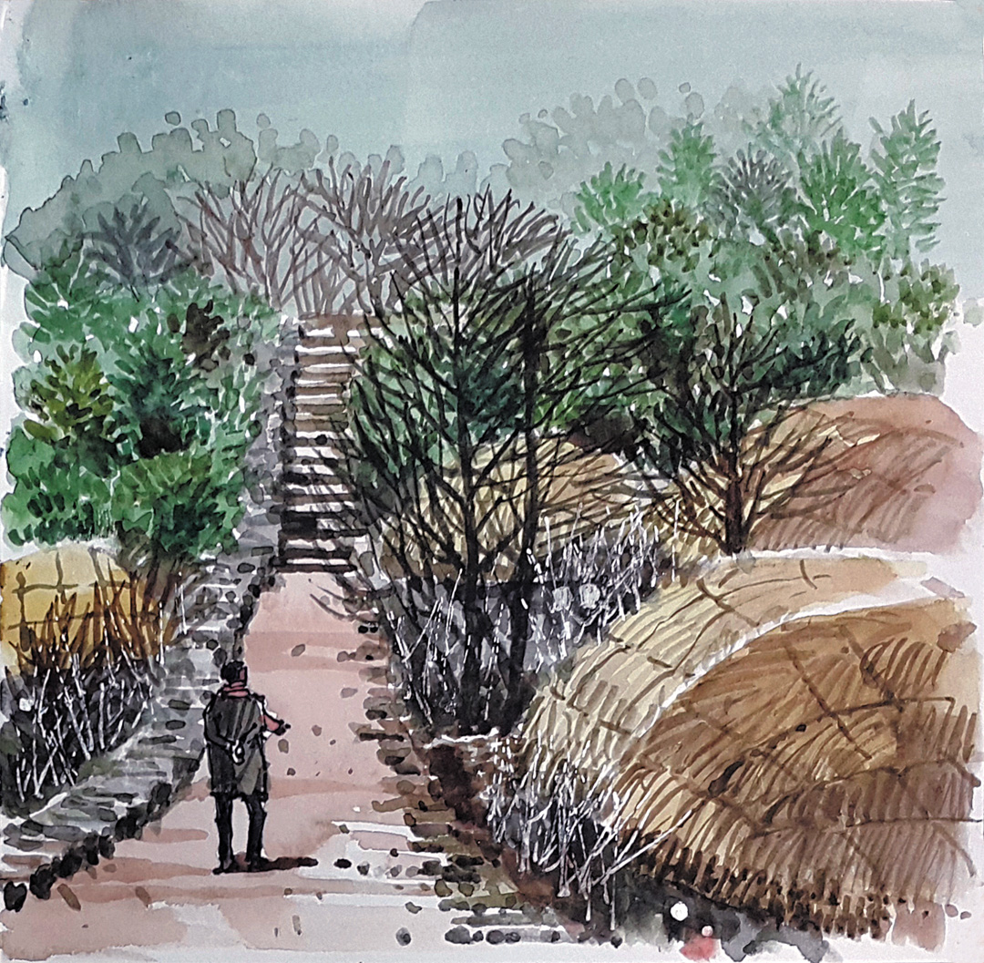 산책은 길 위에서 생각을 줍는 일이다. 성곽 위 산책이야말로 타임머신을 타고 과거의 시간으로 돌아가기에 충분하다. 무념무상으로 걷다 보면 과거와 현재, 그리고 미래가 이 길을 타고 끝없이 연결되어 있는 듯하다. 그 연결선 상에서 나의 생애는 작은 점에 불과하다고 생각하니 허무함보다는 겸허함이 앞선다. 나도 이 순간은 옛사람으로 사람으로 돌아가 낙안읍성을 주제로 시조를 한 수 읊조리고 싶어 진다.