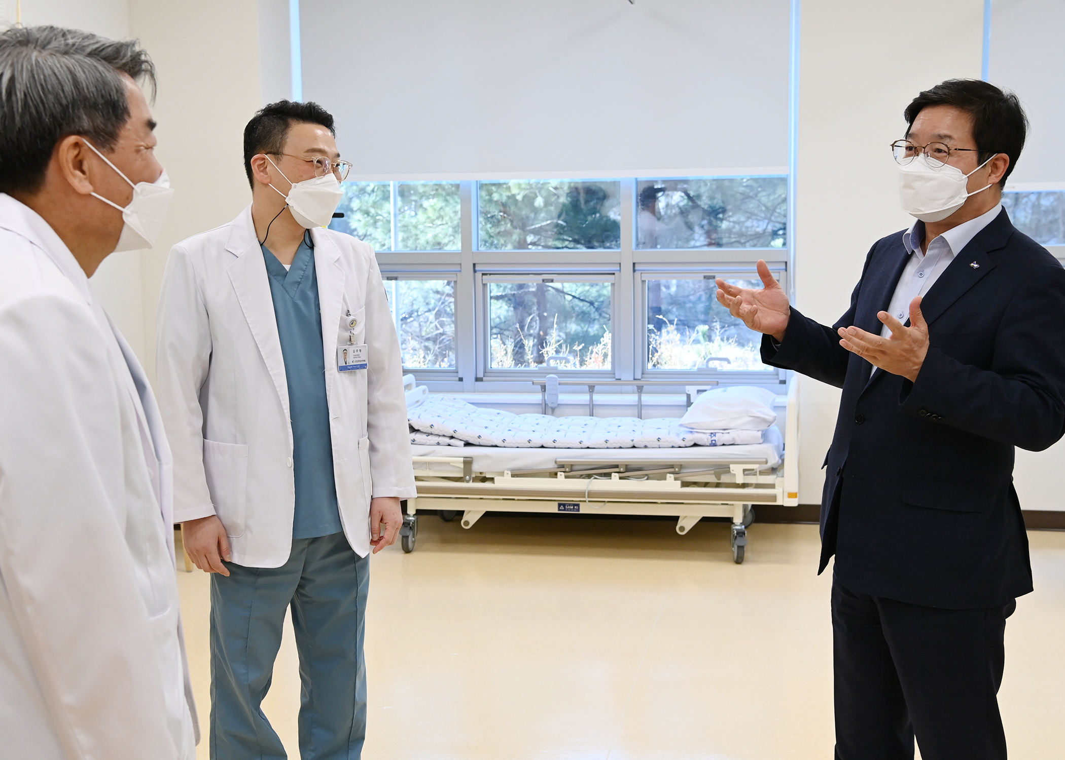 염태영 수원시장은 이날 아주대학교 요양병원을 찾아 백신접종 현장을 점검하고, 의료진을 격려했다.
