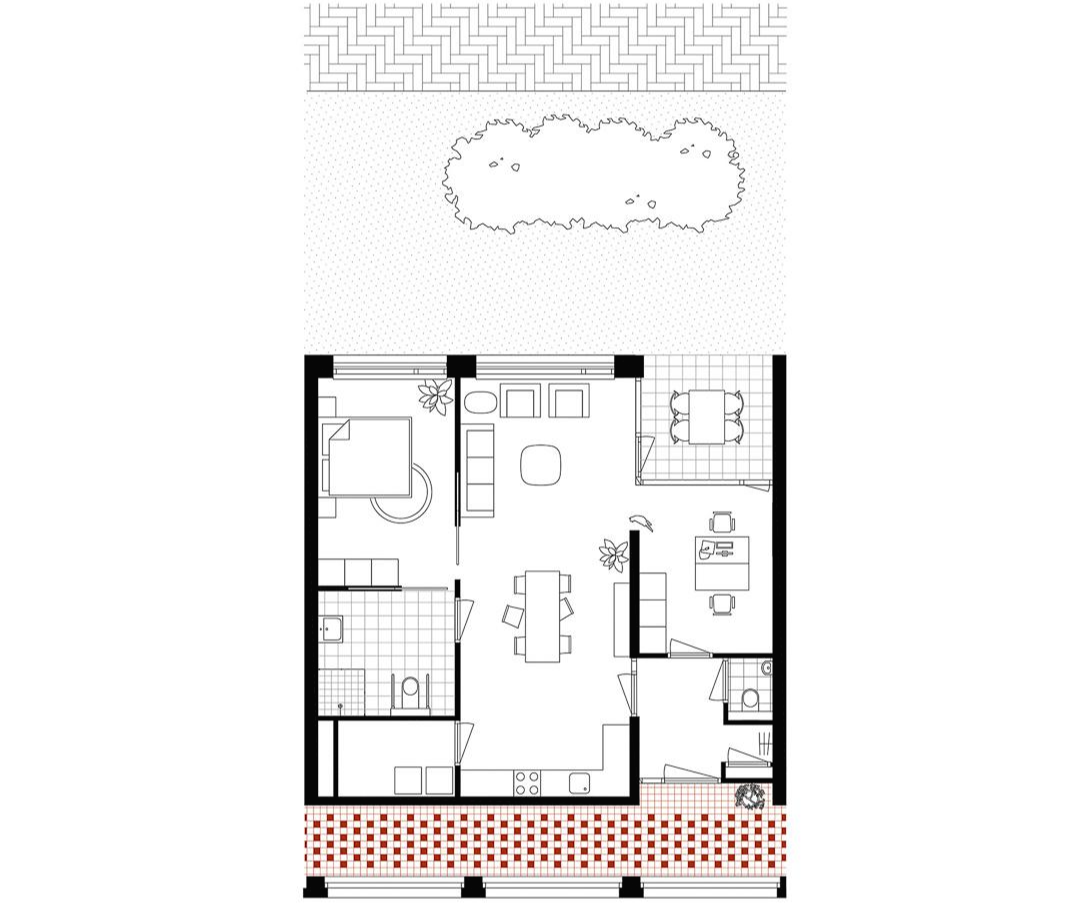 기존의 구조와 잘 가꾸어진 정원을 보완하며 시대의 요구에 맞는 프로그램을 수용하기 위해 원래 수도원의 스타일을 그대로 계승하고 있다. 이는 증축되는 아파트 또한 수도원이 가지고 있는 풍부한 역사적 맥락을 표출한다고 볼 수 있다.