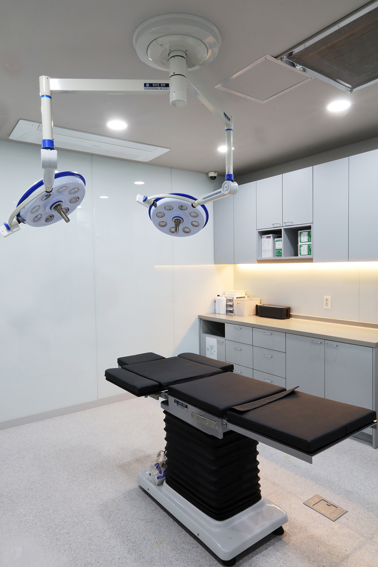 두 번째로 중요한 공간은 수술실입니다. 의료진이 가장 많은 시간을 보내는 공간이기 때문에, 최신 장비를 효율적으로 배치하고 청결과 안전을 최우선으로 고려했습니다. 또한 CCTV 설치로 투명성을 확보했습니다.