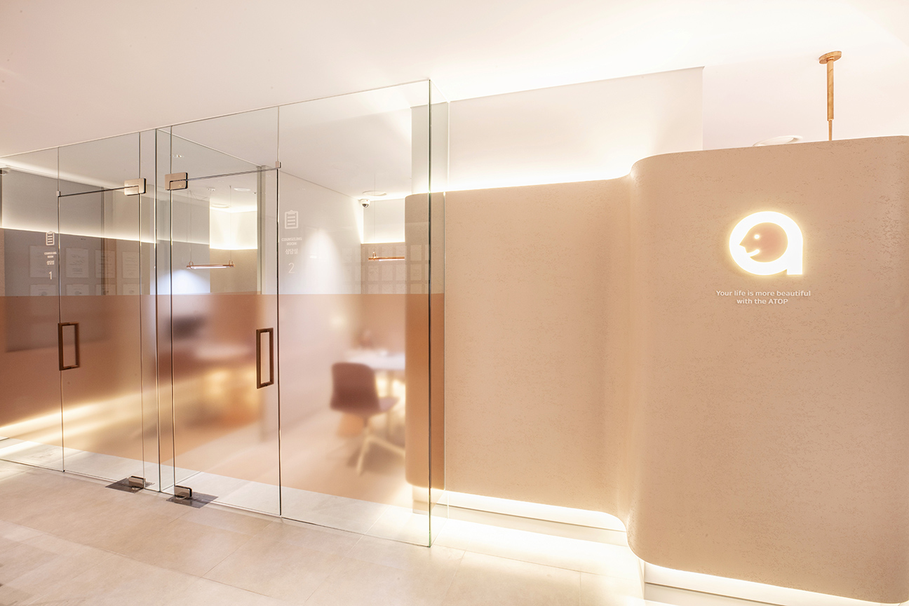 10. 특히 그중에서 ‘오감성형’을 컨셉으로 한 강남 2호점 뷰티클리닉(시술센터)이 HSS가 주최하는 세미나에서 헬스케어디자인 공간으로 손꼽히며, 브랜딩 과정을 소개하기도 했습니다. 이곳은 성형사진이 없는 성형외과로 단순한 미용 성형이 아닌 마음 성형을 지향하는 병원의 철학을 담았습니다. 이에 대해 자세히 소개해 주세요.2호점 뷰티클리닉은 에이탑성형외과의 철학이 가장 잘 드러나는 공간입니다. 성형외과를 찾는 분들은 이미 자신의 외모에 대해 깊이 고민하고 계십니다. 단순히 다른 사람과 비교하거나 조급해지기보다, 자신과 마주하며 진정으로 원하는 것이 무엇인지 생각할 수 있는 공간을 만들고 싶었습니다.