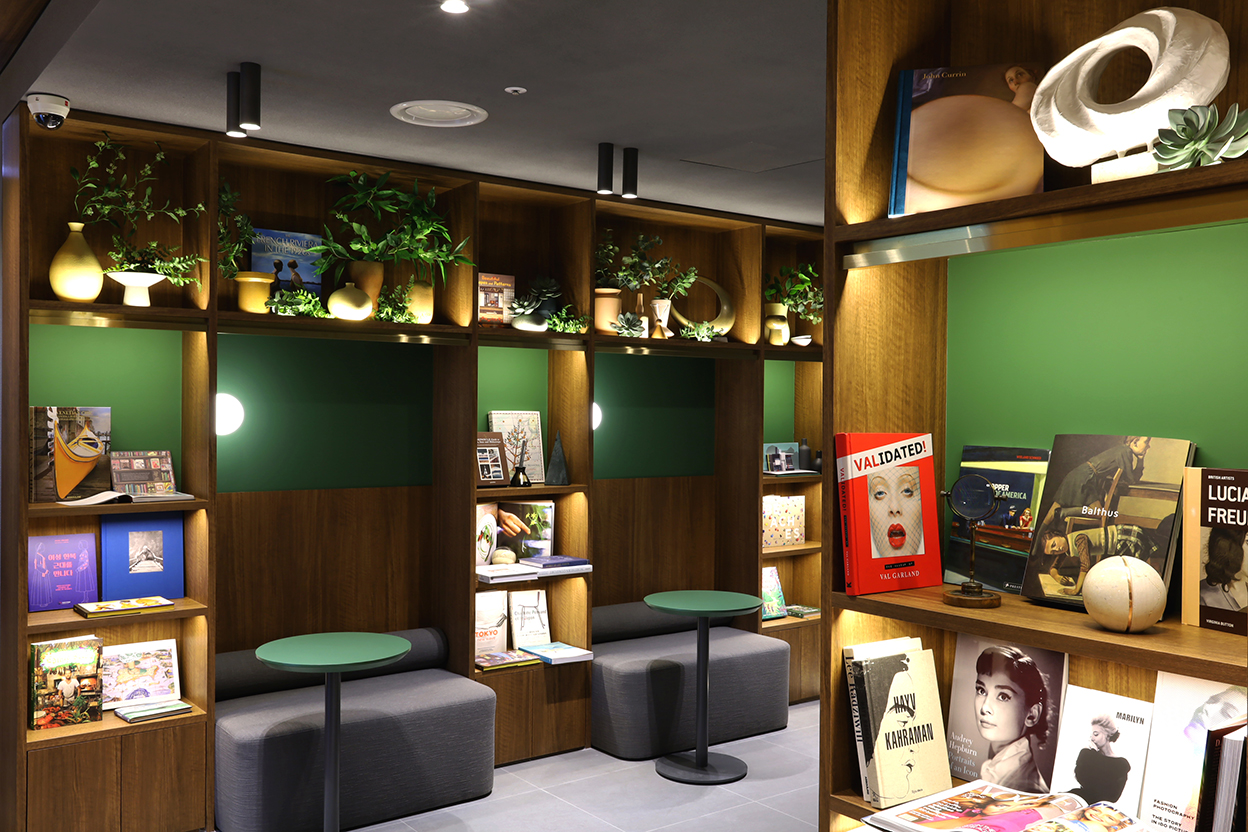 4층 라이브러리- '뮤즈'라는 테마로 구성된 작은 서가가 마련되어 있다.