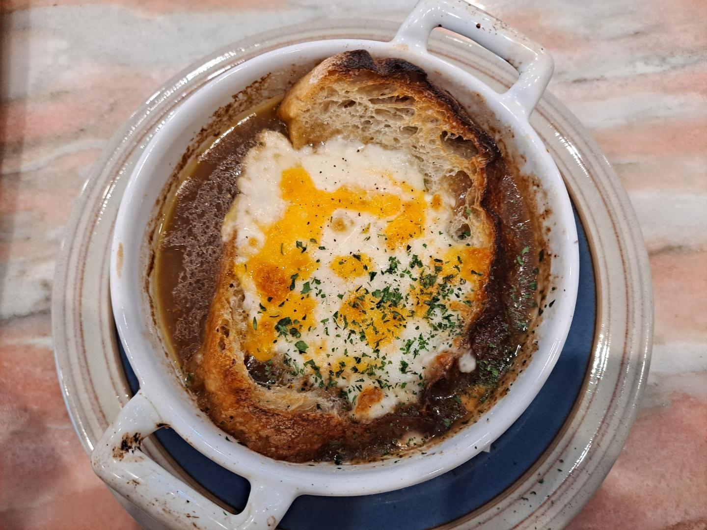 따끈한 프렌치 어니언 수프는 짭조름한 모짜렐라 치즈, 단맛의 양파, 그리고 부드러운 바게트로 달짝지근하게 감칠맛을 내며 배 속을 든든히 채워주니 몸과 마음까지 따뜻해진다. 비 오는 날 양재천 산책 후 어니언 수프는 최고의 메뉴 선택이 아닐까?