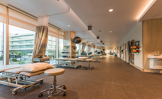 병원에 마련된 운동시설은 바닥부터 천장까지 이어지는 거대한 창문을 통해 이용자들에게 충분한 자연채광과 아름다운 해변경관을 제공한다. 재활시설에는 재활치료사가 환자들과 함께 활동이 가능한 치료풀이 있다.
