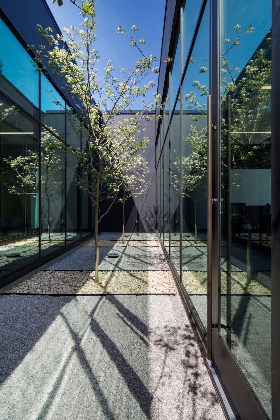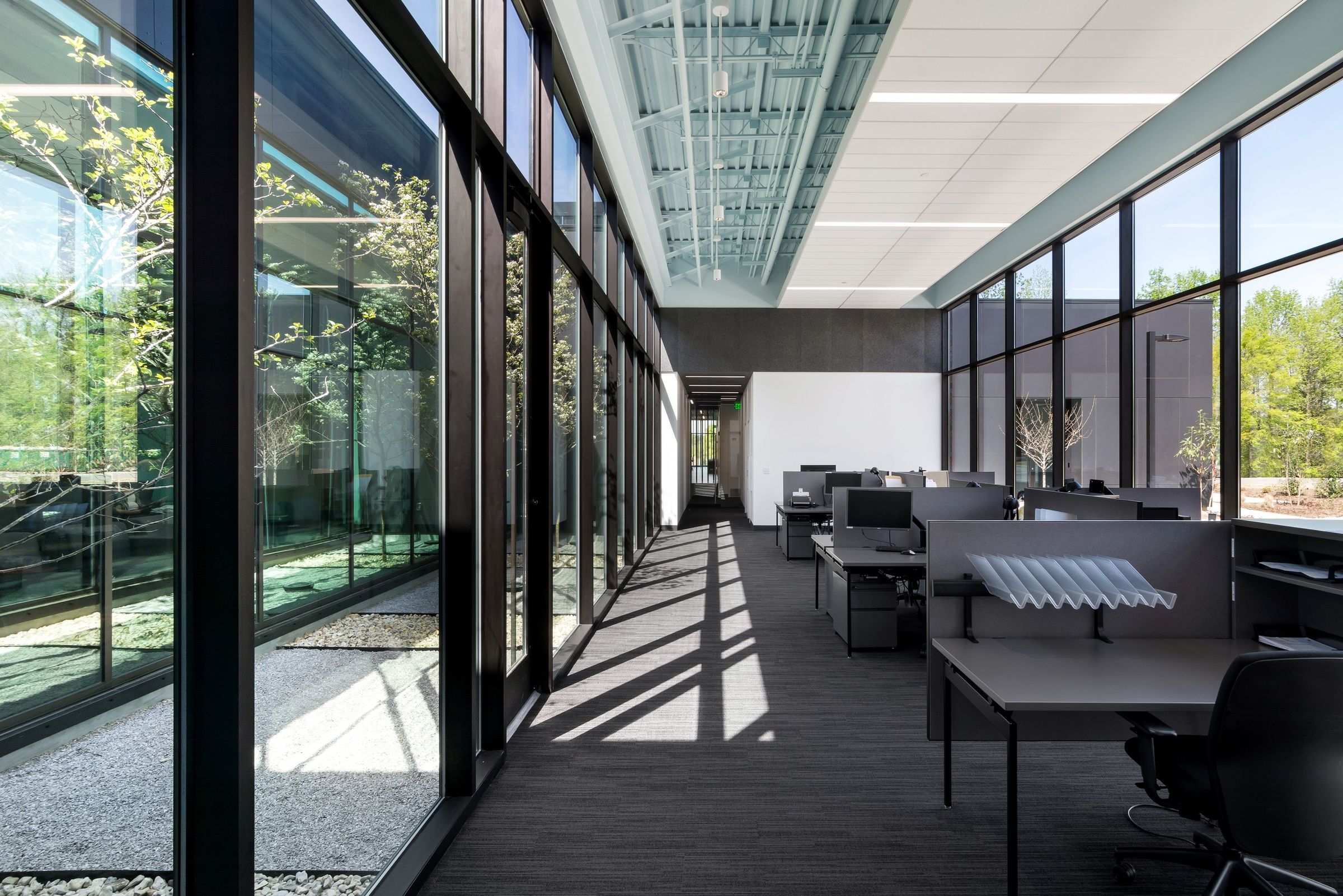 건물 내부는 4개의 복도를 따라 배치를 구성했다. 복도를 중심으로 유리 벽과 금속 스크린을 배치하여 날씨의 변화에 맞게 최적의 실내환경을 제공할 수 있다. 4개의 복도가 교차하는 지점에 위치한 중정은 이용자의 프라이버시를 제공하며 길 찾기에 도움을 준다. 또한 중정을 통해 들어오는 자연광은 내부에 따뜻한 느낌을 부여하여 환자들에게 긍정적인 영향을 미친다. 그리고 내부 마감으로 사용된 거친 질감의 목재 사이딩은 환자 서비스 영역을 표시하며 건물의 웨이파인딩 체계에 도움을 준다.