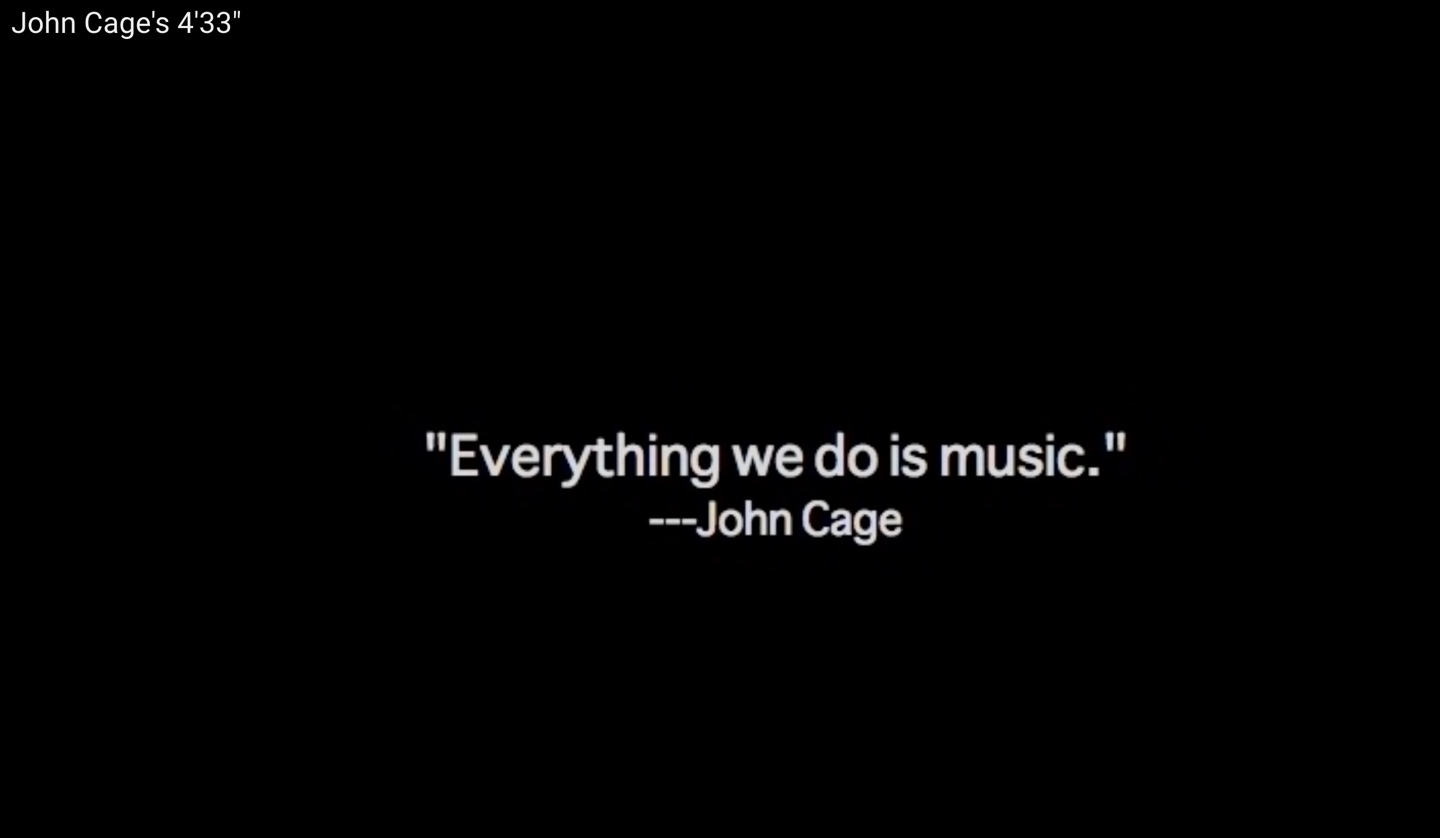1913년 5월 29일 파리의 샹젤리제 극장에서 스트라빈스키의 봄의 제전이 초연되었을 때 기존의 문법과 관행을 파괴하며 해괴하기까지 한 공연으로 현장에서 관객으로부터 맹렬한 야유를 일으키고 반대 시위가 있었을 정도의 역사를 통해 현대음악이 탄생하는 계기가 된 사건 이후로 공연계에서 아주 도발적이면서 창조적인 행위였다. 물론 케이지의 공연 또는 작품 전시에 앞서 마르셀 뒤샹의 레디메이드 작품 관점은 케이지에도 영향을 미치는 사건이 또 있었지만 이와 관련된 경험의 가치는 지면상 차후에 미술 경험을 중심으로 다른 글 통해서 공유하고자 한다.