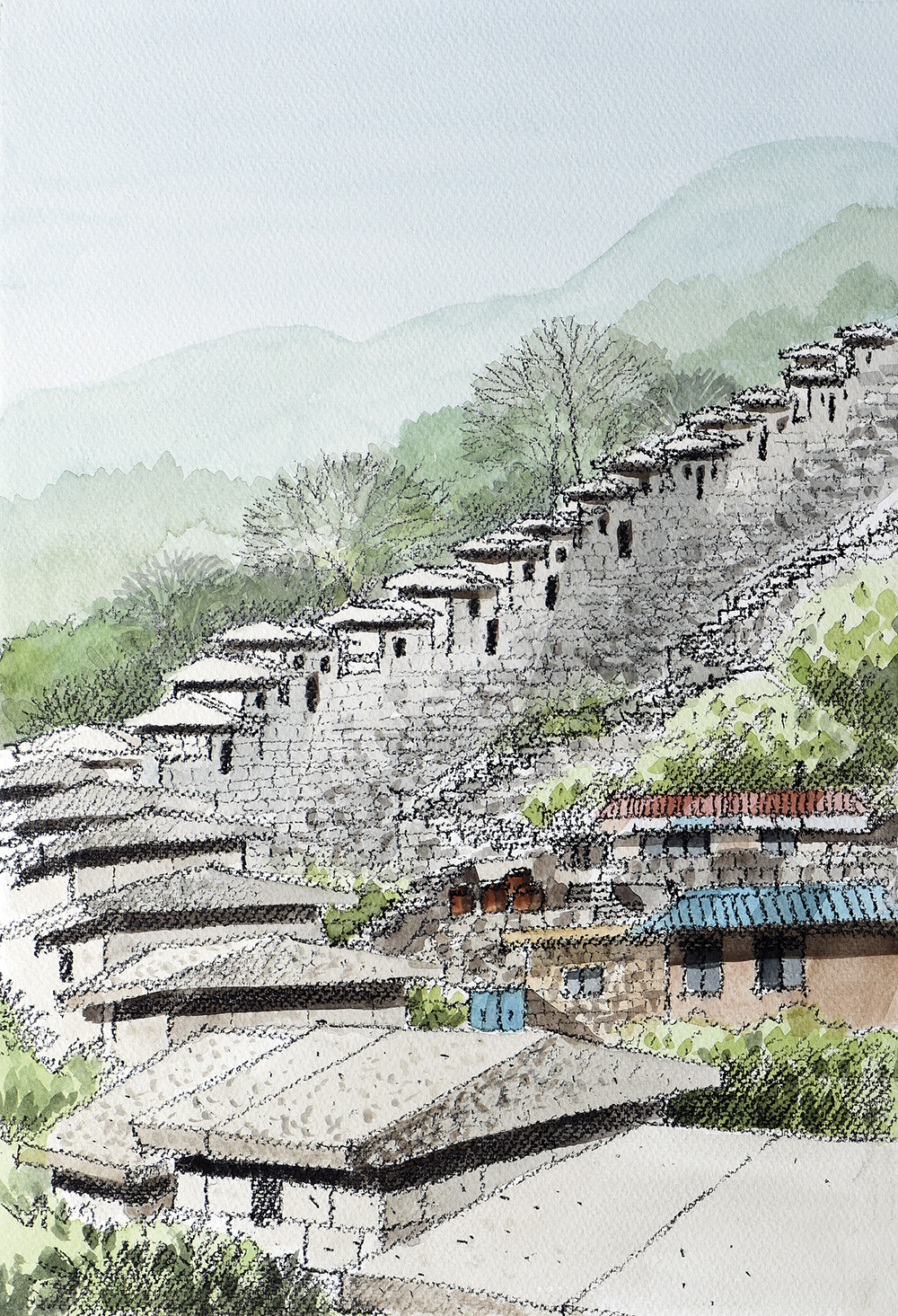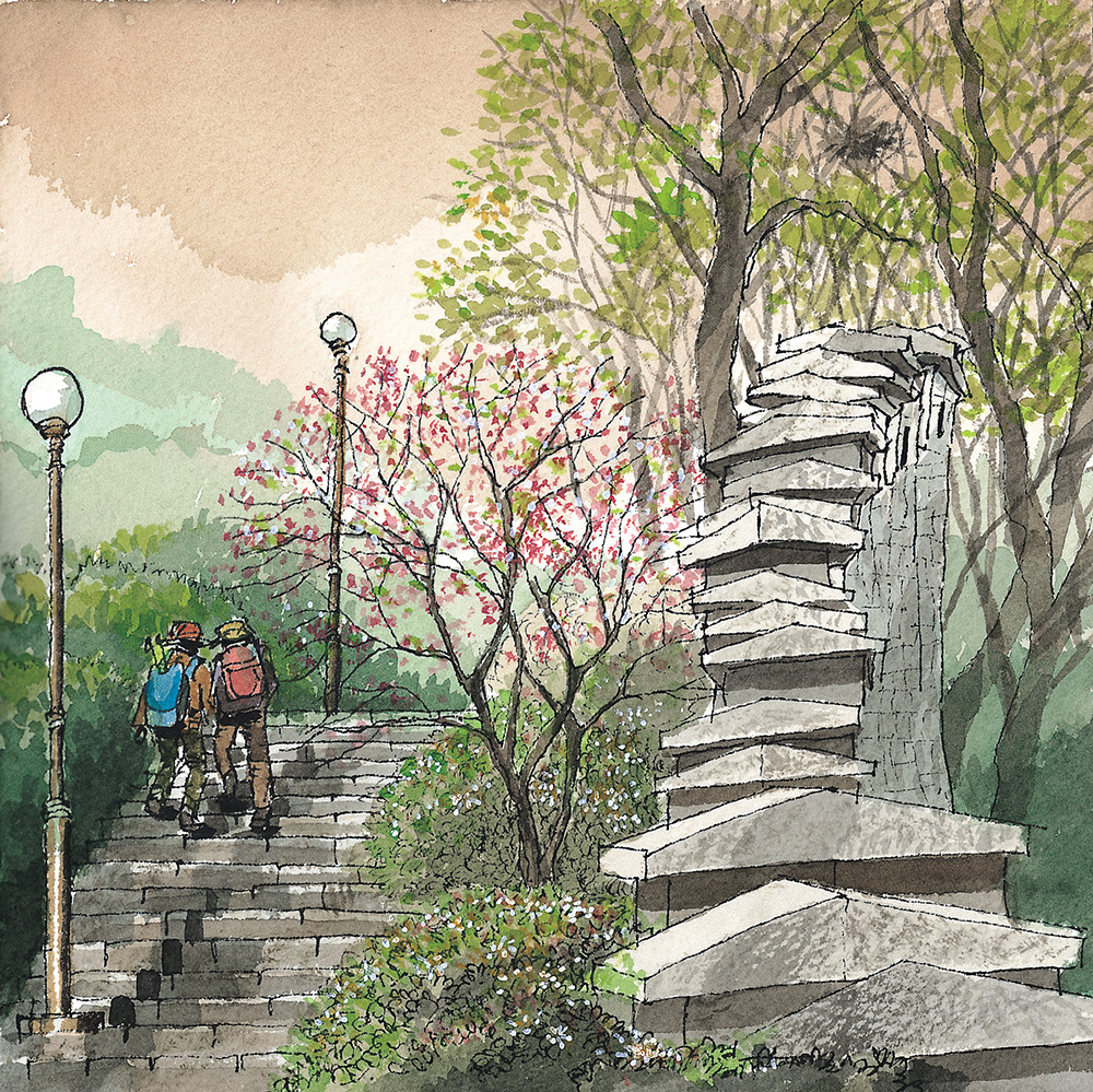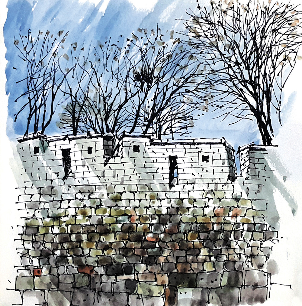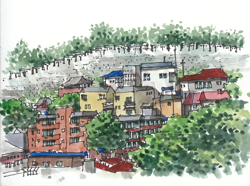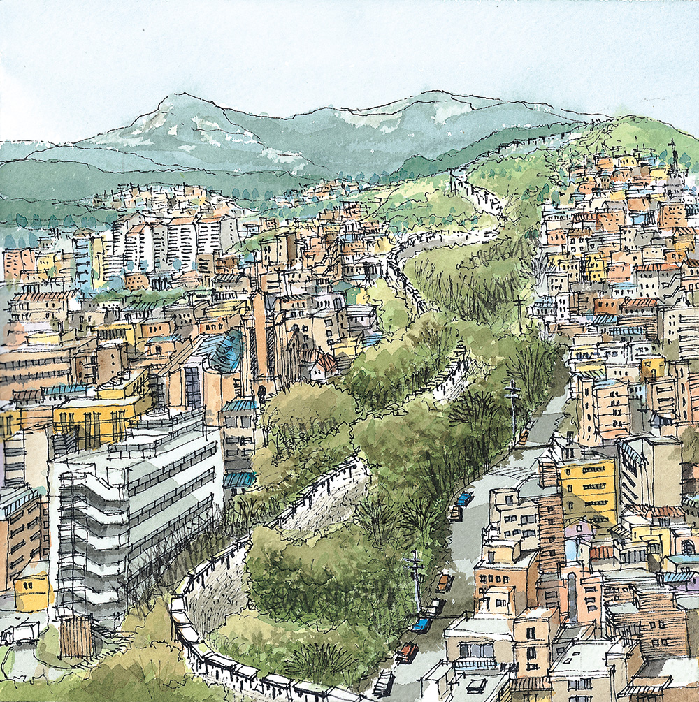 낙산 구간 몇 해 전에 눈이 내리는 한양도성 낙산 구간의 길을 걸어보고 싶어서 함박눈을 기다린 적이 있다. 설경 속에 하얗게 변한 한양도성과 마을의 풍경을 나의 눈으로 직접 확인하고 사진과 그림으로 꼭 기록하고 싶었기 때문이다. 평소에도 걸어보는 길이지만 눈이 내리면 저 성벽은 어떤 풍경을 보여줄까를 상상해보니 소풍을 앞둔 어린아이 마음처럼 설렜었다.