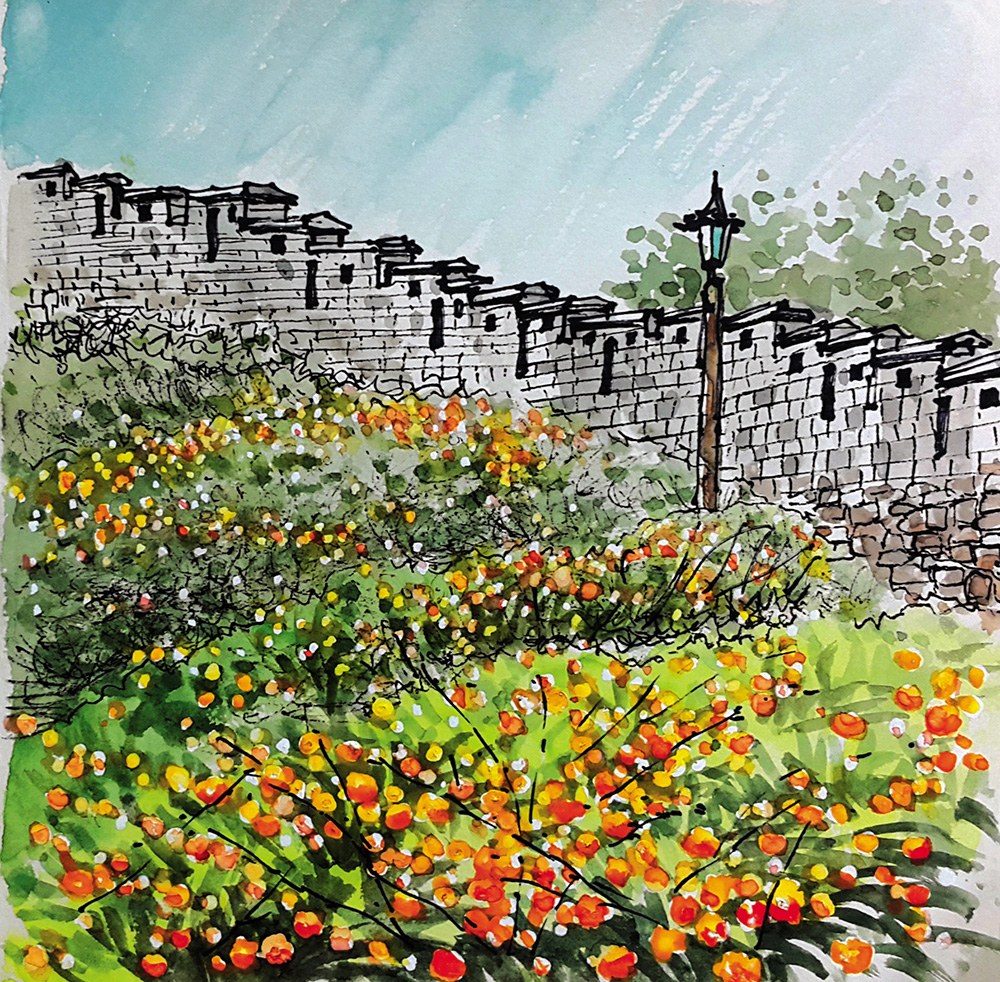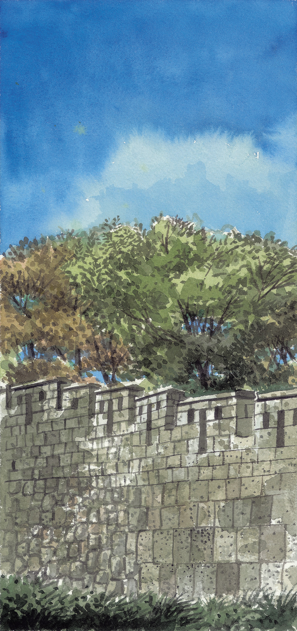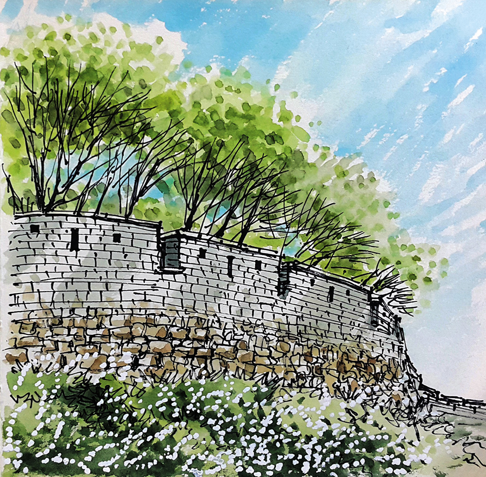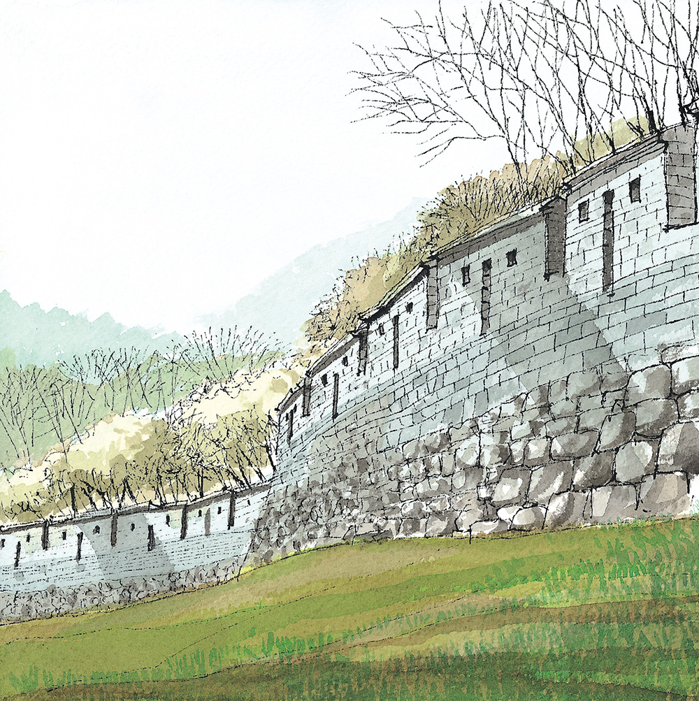 낙산 구간 이처럼 과거와 현재, 도시와 자연이 공존하는 한양도성을 따라 걷고 사시사철의 풍경을 기록하는 일도 나의 행복한 일상 중에 하나다. 자세히 관찰할수록 오랜 시간 동안 묵묵히 자리를 지켜낸 성벽의 돌멩이와 바윗돌 하나하나가 모두 대견스럽다. 겨우내 숨죽였던 앙상한 나뭇가지들이 성벽 너머에서 다시 기지개를 켜는가 싶더니 어느새 시간은 한 해의 중턱에 서 있고 나무는 벌써 녹음이 짙다. 성벽이 지켜온 시간은 정지되어 보이지만 세월은 빠르다.