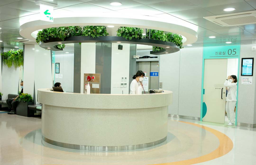 이번 리모델링은 과거 의사 중심 디자인에서 환자 중심 디자인에 초점을 맞추고 진행했습니다. 그래서 건물의 가장 기본적인 골조만 남긴 채 모두 바뀌었다고 볼 수 있습니다. 이전 한국병원의 모습을 알고 있었던 사람이라면 현재의 모습은 상상할 수 없을 것입니다. 단순히 오래된 부분을 보수하는 것이 아니라 백지에서부터 고객들이 가장 편안하고 쾌적할 수 있는 병원의 모습을 새롭게 그려나갔습니다. 처음 한국병원을 설립할 당시 에너지 효율화로 인해 층고를 낮게 지을 수밖에 없었습니다. 특히 보조 활주로가 우리 병원 앞을 지나가기에 층수를 올릴 수가 없었던 것이죠. 이러한 여러 가지 제약이 있었던 터라 리모델링에 상당한 어려움이 따랐을 터임에도 불구하고 노태린 대표가 만족스러운 결과물을 보여주었습니다.