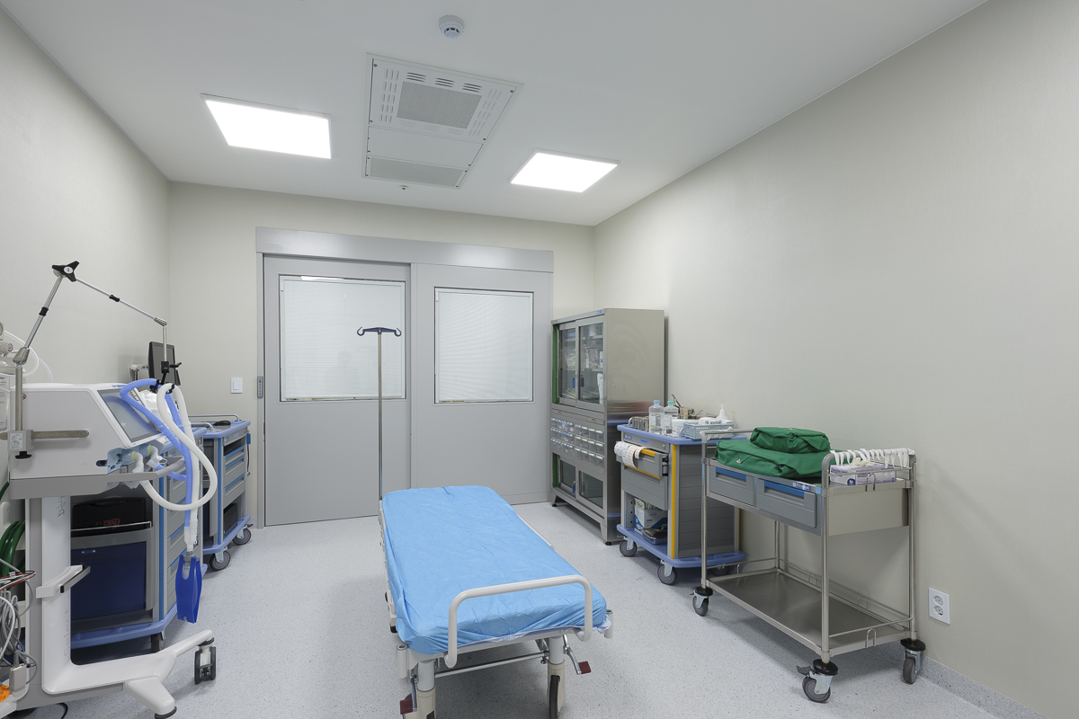 중환자실 먼지와 세균 등이 제거된 청정한 공기를 공급할 수 있는 공기 정화 설비를 갖춘 중환자실은 중환자의 집중치료 및 감염방지를 위해 다인실이 아닌 개인실로 구획하였다. 외부의 커튼월을 통해서 들어오는 햇빛이 병실까지 유입될 수 있도록 격벽에도 설치한 커다란 창은 병실에서도 따스한 햇살을 느낄 수 있도록 한다. 또한 중환자를 걱정하는 보호자의 마음을 헤아려 의료진의 동선과는 별도로 보호자의 동선을 계획하여 중환자의 상태를 살펴볼 수 있도록 배려하였다.