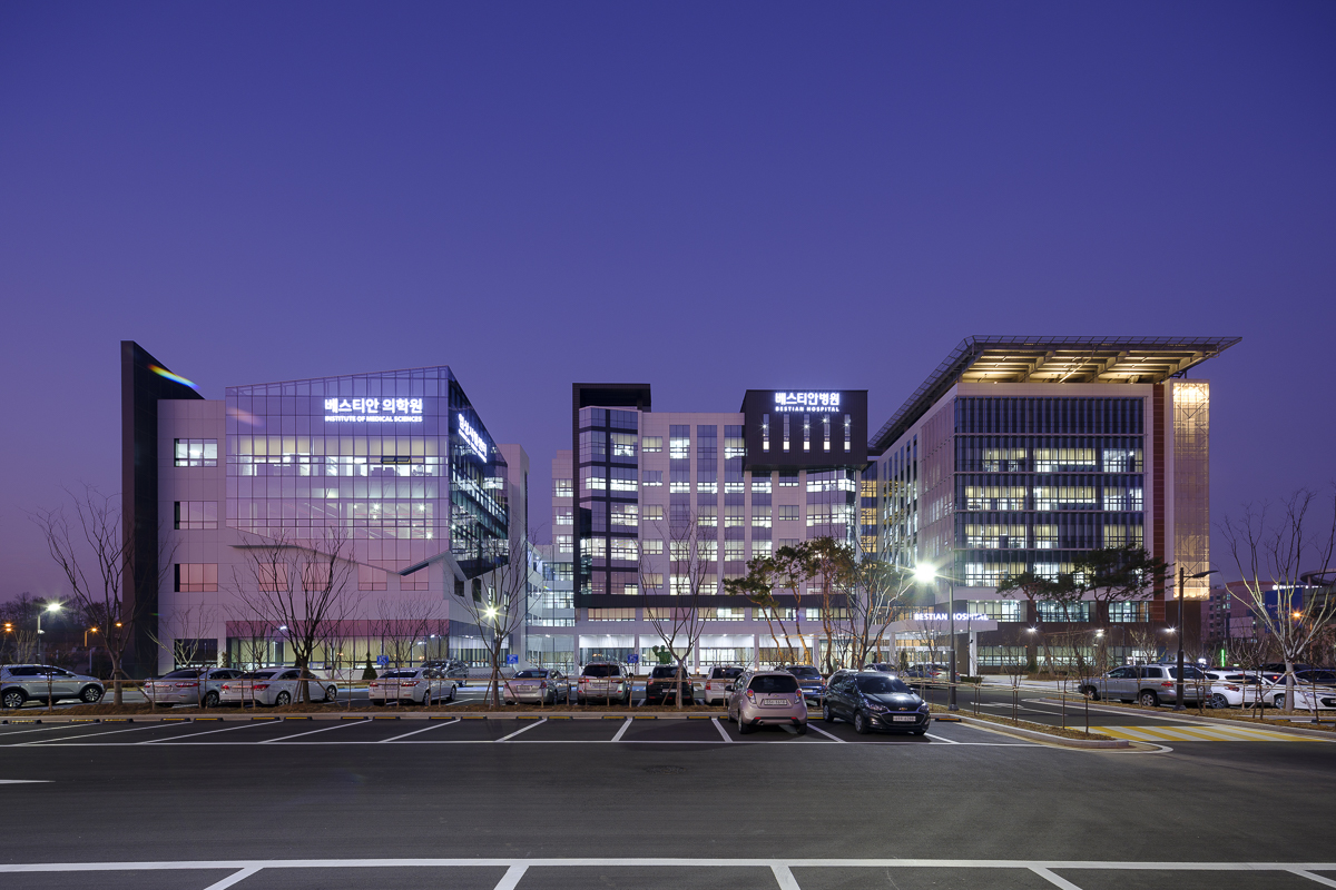 '베스티안병원 오송'전국 주요 거점(서울, 부천, 대전, 부산)에서 특화된 일반 환자들과 화상 환자들을 케어하던 베스티안병원은 오송 생명과학 단지라는 특별한 위치에 새로운 병원을 지어 임상시험센터와 종합병원의 복합된 기능과 더불어 충북지역 거점병원의 임무를 수행하기를 바랐다. 또한 시각적으로 차갑고 긴장감 있는 복잡한 환경을 조성하는 기존 국내 종합병원과 반대로 (재)베스티안병원은 공간 안에서 심리적으로 안정감을 제공해 주도록 '더불어 숲'이라는 아이덴티티를 구성하여 화상 환자의 육체적 고통뿐 아니라 심리적 고통까지 치유하고자 한 건축주의 의도를 반영하였다.