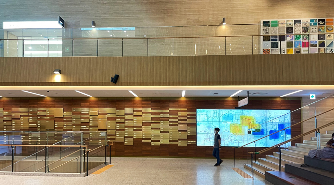 이렇게 좋은 작품들이 이대서울병원에 포진되어 있습니다. 작가들 선정은 조형예술대학 학장님이 저희 아트 큐브의 운영을 맡아주시면서 진행하고 계십니다. 특히 고가의 작품이 아니더라도 우리 건물과 조화를 이룰 수 있는 작품들로 구성되어 있습니다.