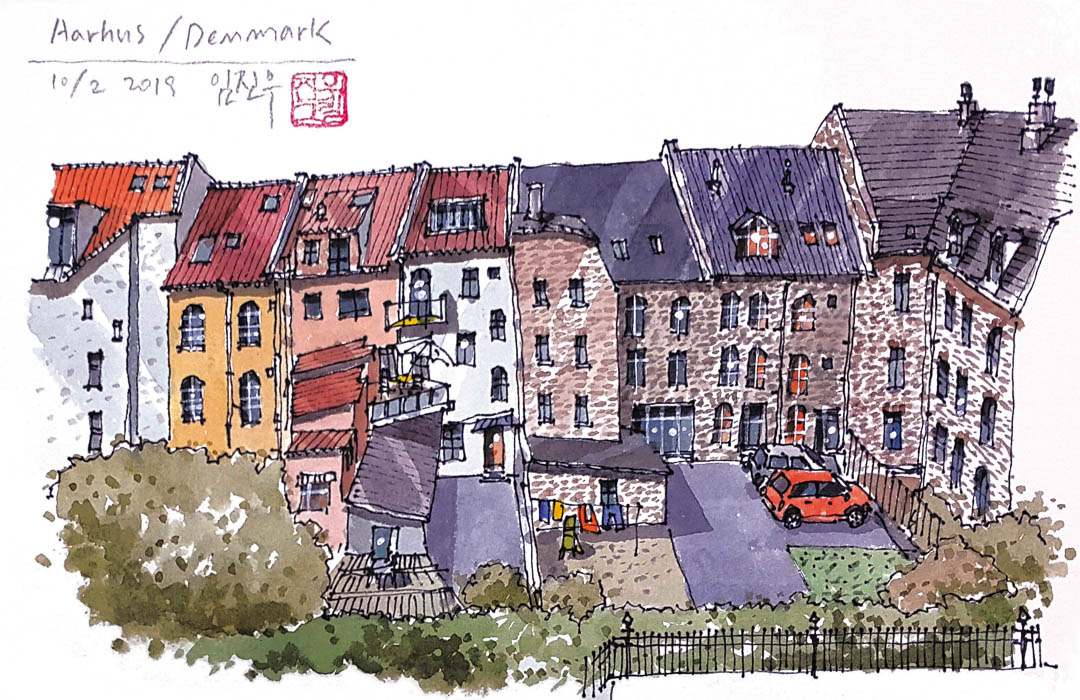 오르후스. 발음하기도 기억하기도 어려운 이름을 가진 덴마크의 도시지만, 고층빌딩 하나 없는 저밀도의 도시에서도 건져갈 풍경들은 의외로 풍부하다. 투숙한 호텔의 작은 객실에서 창밖으로 보이는 빈티지한 벽돌집들의 풍경도 빼놓지 않고 스케치북에 담아서 오르후스 방문의 기억으로 남기고 싶어진다. 비록 짧은 여정이었지만 나에게는 스토리텔링과 다양한 콘텐츠가 있는 도시로 기억될 것이다.
