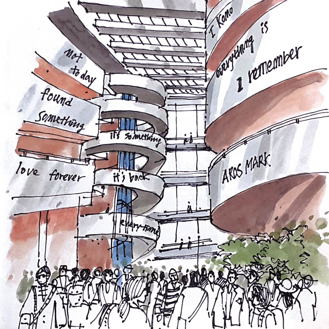 ARoS 미술관 ARoS 미술관은 시청 근처에서 가깝다. 52m*52m의 정방형 평면으로 붉은 벽돌로 구성된 견고한 외관은 매우 단순한데 머리 위에 독특한 색상의 원형 프레임을 얹고 있어서 인상적이다. 자세히 보면 그 묘한 프레임 안에는 움직이는 사람들이 있어 호기심을 자극한다. 이름하여 '레인보우 파노라마(Rainbow Panorama)'라는 올라퍼 에리아슨의 설치미술 작품으로 미술관의 하이라이트다. 복도 폭 3m, 지름 52m, 둘레길이 150m, 원형 밴드는 무지개 색상의 컬러 유리로 마감되어 현란한 판타지 속에서 오르후스의 도시 전체 360°를 조망할 수 있다. 도시에 색과 아름다움을 덧입혀 써클을 한 바퀴 도는 동안 초현실 같은 체험이 가능한데 가히 신비롭고 감동적이다. 건축과 미술의 경계에 서 있는 공공 설치미술은 걷는 사람들조차 설치미술의 움직이는 한 부분으로 존재한다.