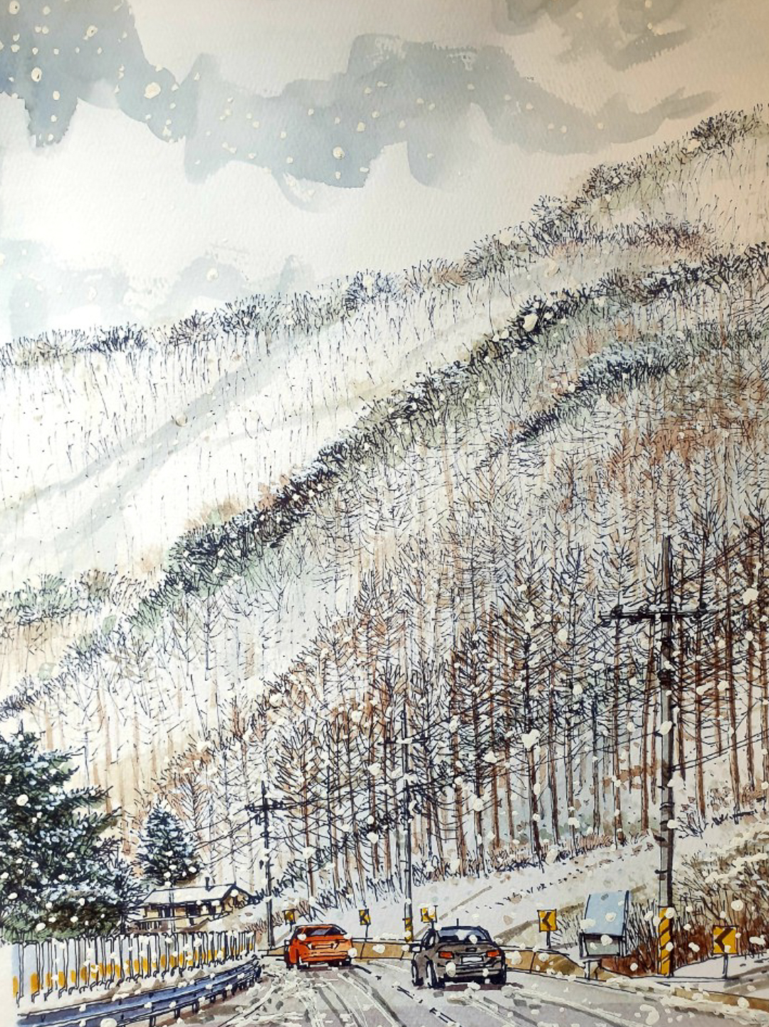 속초 울산바위 강원도 속초에 다녀오는 길에 인제 용대리를 지난다. 춥고 을씨년스러운 겨울이지만 눈이 내리면 도로의 풍경은 감성적으로 뒤바뀐다. 마른 가지의 겨울 산에는 함박눈이 소리 없이 쌓이고 점점 굵어지는 눈 속에 풍경은 함몰된다. 이미 도로 위에는 사람의 발자국과 차량의 흔적들이 시간의 켜를 두고 어지럽게 중첩되어 있다.
