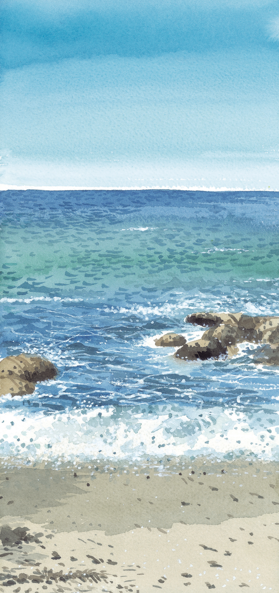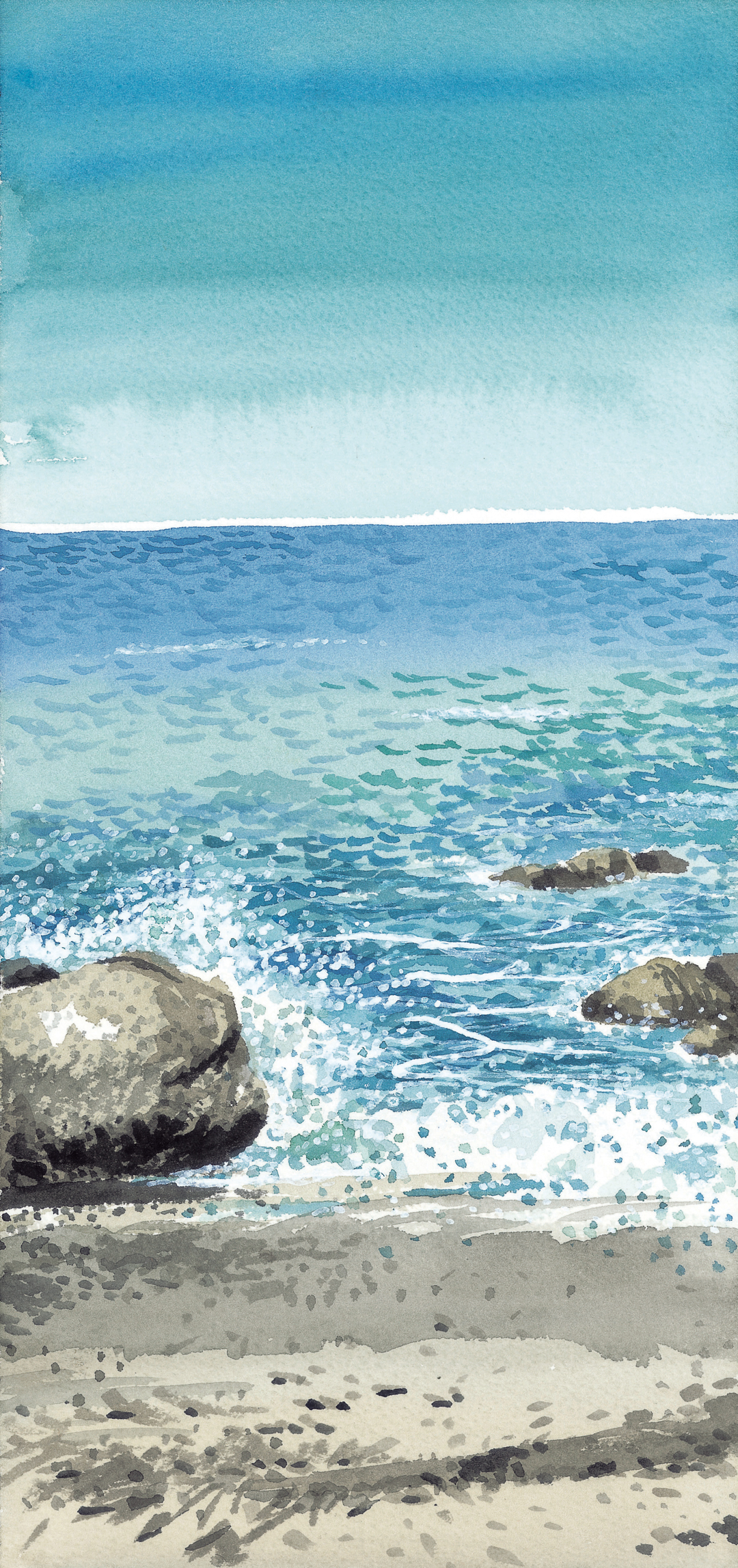속초해변 해안선의 풍경은 100년 전에도 같은 모습이었을 것이고 이곳은 태곳적 장면과 다름없으니 단번에 원시 자연으로 회귀하는 상상이 가능하다. 파도를 넘어 멀리 수평선 위에는 일엽편주처럼 고깃배가 떠있고 그 위로 한가로운 갈매기 무리들이 공중에서 어지러운 곡예비행을 즐기고 있다. 이 순간 바다는 분명히 시간이 정지되었거나 혹은 느릿느릿 흘러가는 곳이다. 그런 원초적 바다를 마주하고 서서 나의 존재를 확인하고 싶다.