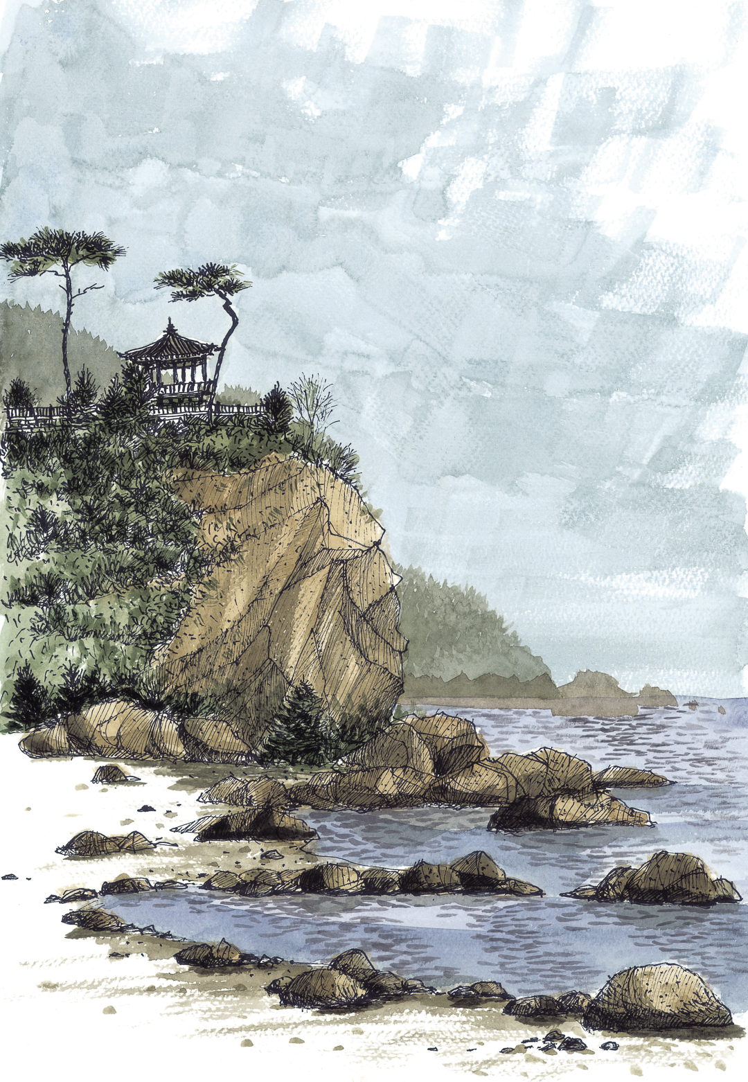 강릉 경포대 가을 단풍이 절정일 때 설악산을 방문하면, 주변의 산들은 온통 울긋불긋 화려한 색상으로 불꽃놀이 중이다. 속초의 신흥사에 들러 동안거(冬安居)를 준비 중인 산사를 돌아본다. 긴 겨울, 침묵의 시간으로 가기 전에 단풍은 스스로 마지막 화려한 축제를 벌인다. 혹시 겨울에 이곳을 지난다고 해도 잔설에 덮인 울산바위 능선의 뾰족 거리는 바위들의 행진과 다양한 표정은 도로에서 순간을 포착해서라도 스케치북에 담고 싶어진다.