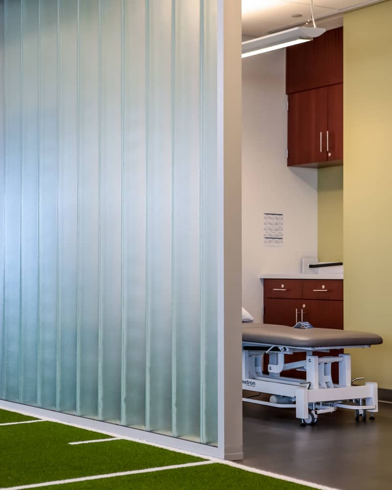 내부 모든 공간이 선수들의 치료와 훈련을 위해 설계되어, 환자와 방문객들은 처음부터 치료와 회복에 전념할 수 있도록 한다. 환자들을 돕기 위한 미디어와 영감을 주는 그래픽, 천연 재료로 이루어진 내부 분위기는 전반적으로 활기차면서도 개개인의 헬스케어에 도움을 주는 따뜻한 분위기를 만들어낸다.