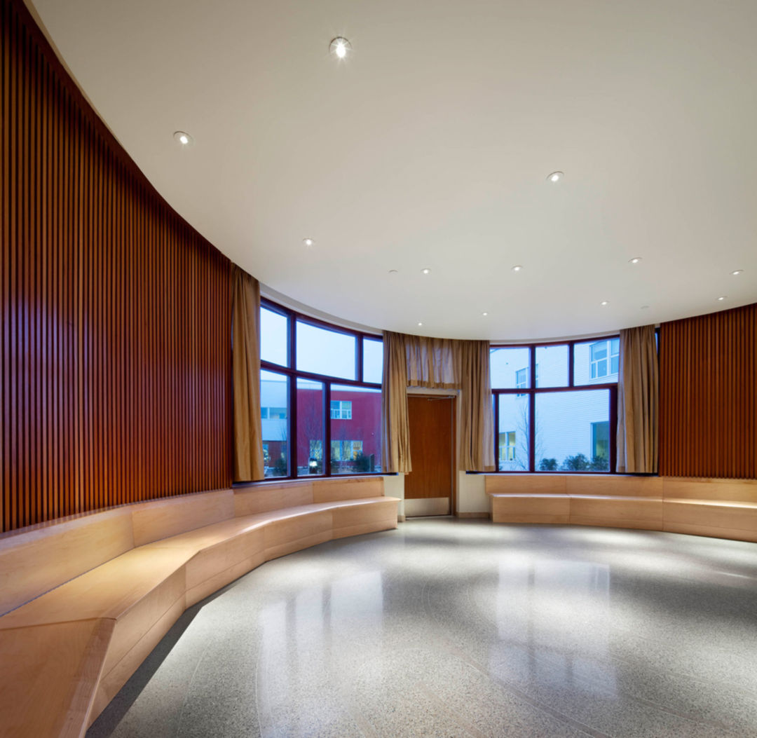 두 건물이 겹치는 중앙부에는 '회복의 전당'이라는 이름의 공간이 위치하고 있다. 주요한 프로그램들의 동선이 이 넓은 회랑을 중심으로 모이게 설계되어 있다. 환자들이 이 곳에 들어서서 각각 몸, 마음, 영혼을 상징하는 세 개의 천창으로부터 위엄 있고 차분한 분위기를 느끼게 된다. 그것은 집단 치유를 위한 크고 종파가 아닌 성스러운 공간에서 끝난다.
