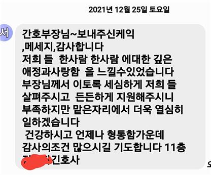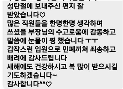 막상 요양병원의 부서장으로 일하다 보니 우리 간호사들의 일의 힘듦을 잘 알기에 무조건의 지시나 교육보다는 사랑의 마음을 주어야겠다고 생각했습니다. 그래서 한 해가 가는 시점에 각 병동마다 맛있는 케이크를 주고 90명이 넘는 간호사 개개인에게 밤새워 일일이 편지를 썼습니다.