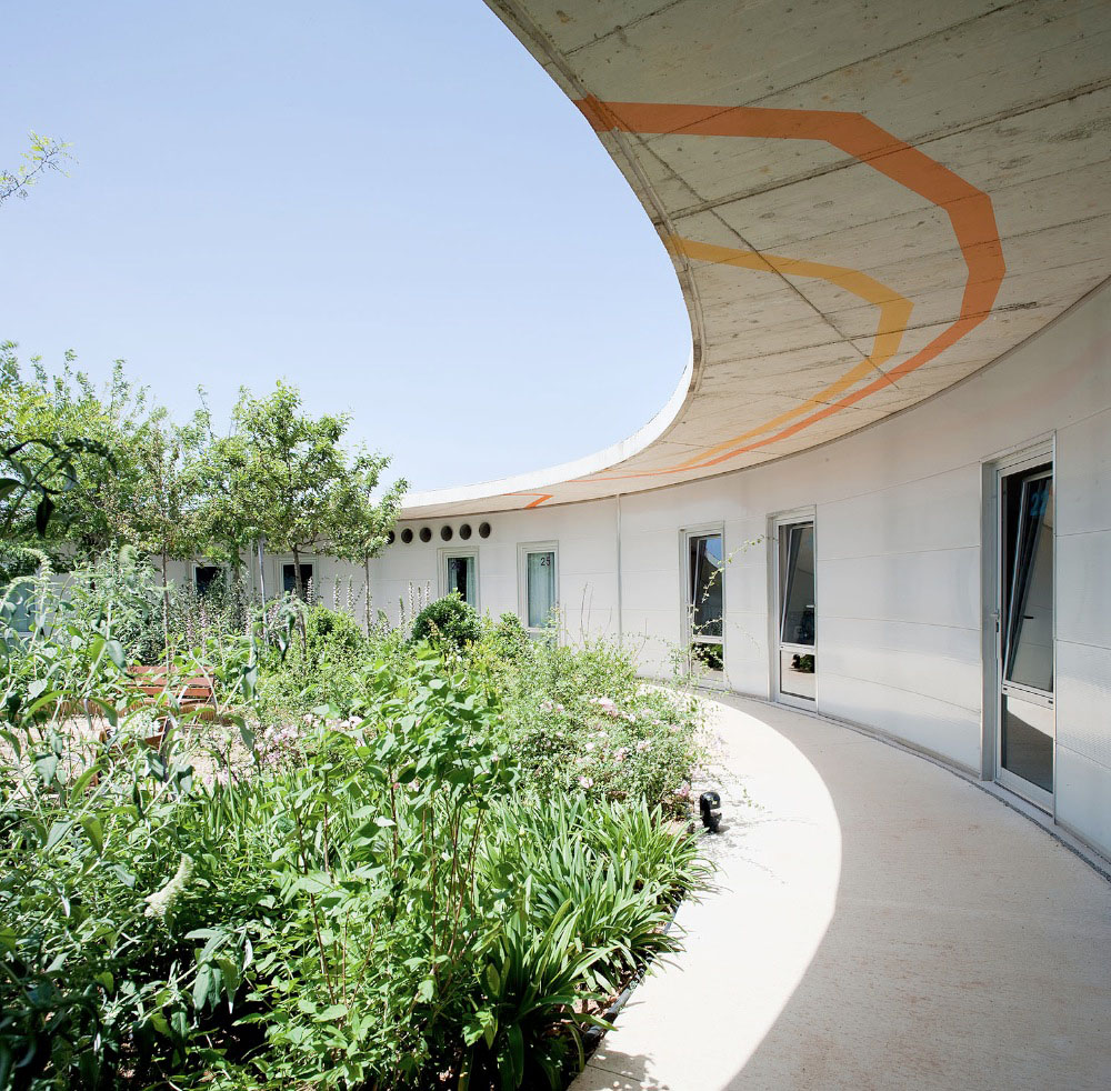 이에 병원처럼 보이지 않는 건물을 목표로 한 Santa Rita Geriatric Center는 복도나 건축적 장애물을 없애고 모든 방에서 넓은 정원은 물론 공용공간으로 직접 접근할 수 있는 형태로 디자인되었다. 정원은 사람들이 모이는 일종의 ‘로비’ 공간으로, 이곳에는 외부정원과 종의 개화 패턴에 따라 3개 영역으로 구분되는 내부정원이 있다.