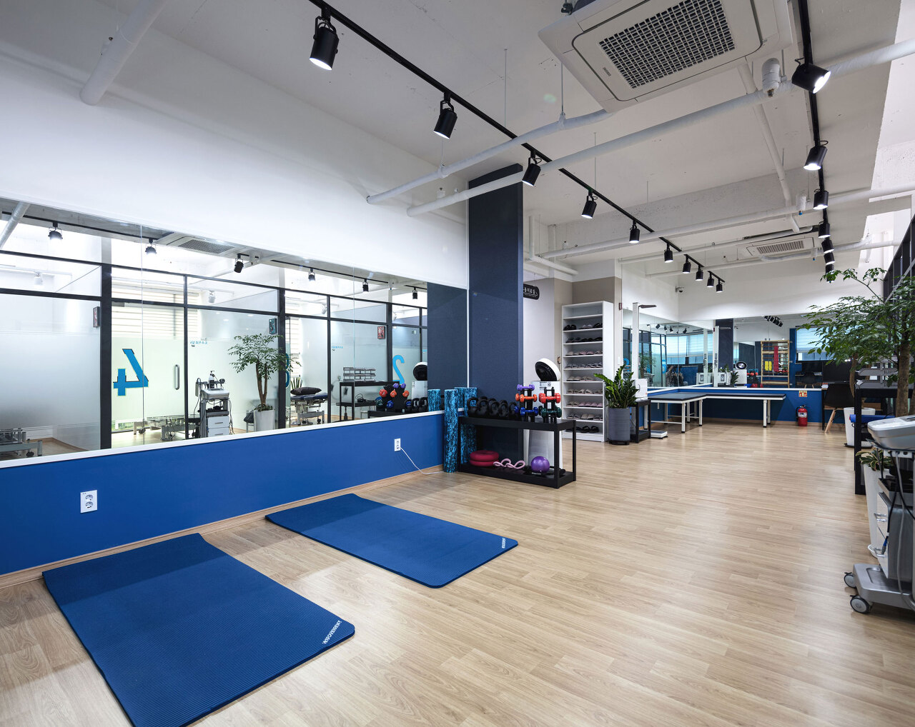 시원한 블루컬러로 쾌적함이 느껴지는 운동치료실