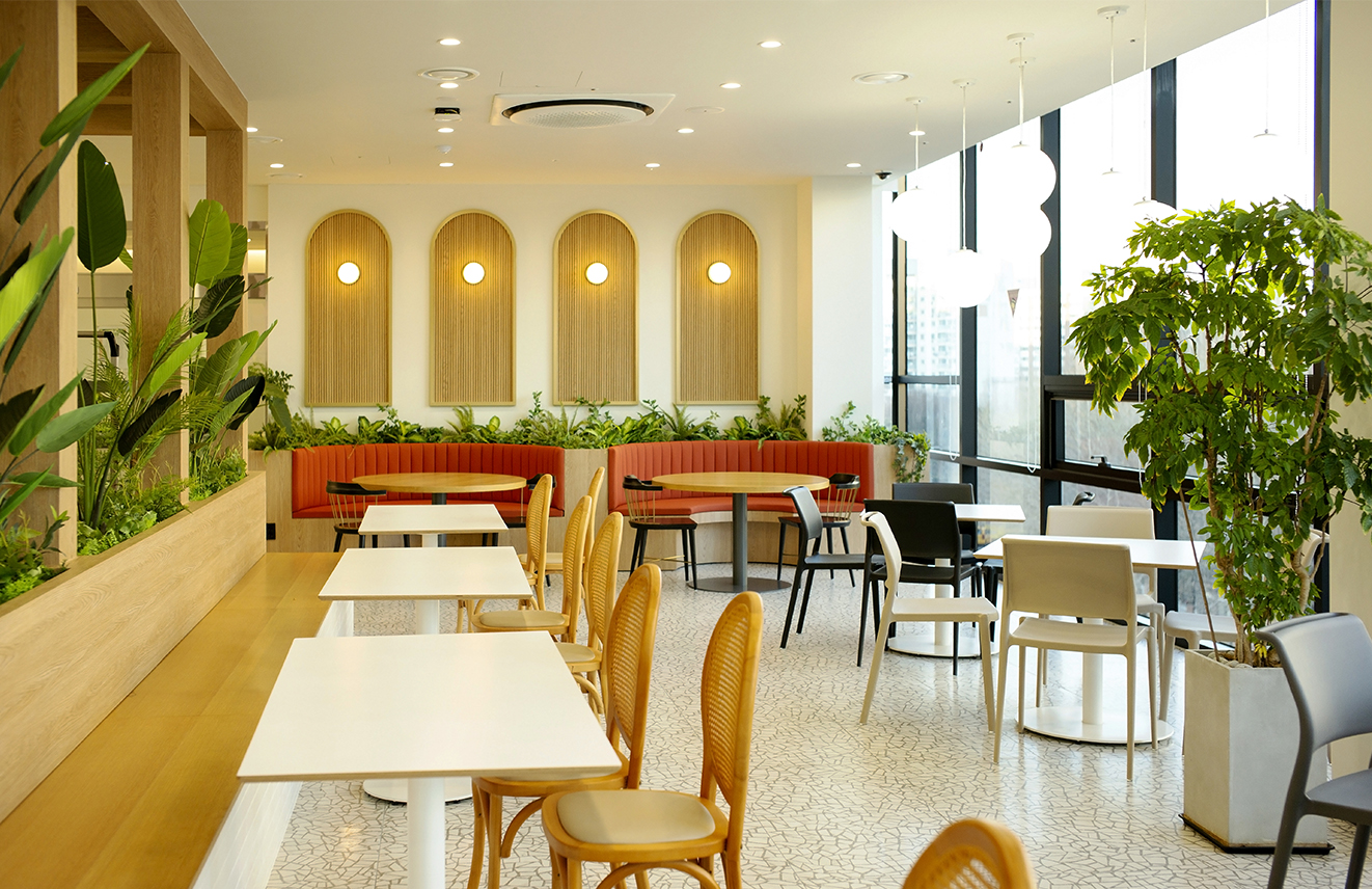 더욱이 주방은 다른 호텔 레스토랑 못지않게 디자인되어 단번에 눈길을 사로잡았다. 5층에 위치한 식당은 야외 정원과 맞닿아 있으며, 레드 컬러의 붙박이 체어 위에 설치된 라운드 목재 루버가 전체 디자인을 주도하고, 곳곳에 놓인 초록의 식물들로 활기를 불어넣었다. “암 환자들은 밥 한 끼가 굉장히 중요합니다. 우리 병원 식당은 우리나라 어디에서도 따라잡기 힘들 정도로 최고라고 자부합니다. 특히 조리사를 비롯해 식당에서 일하는 팀들이 굉장한 자부심을 갖고 있습니다.”