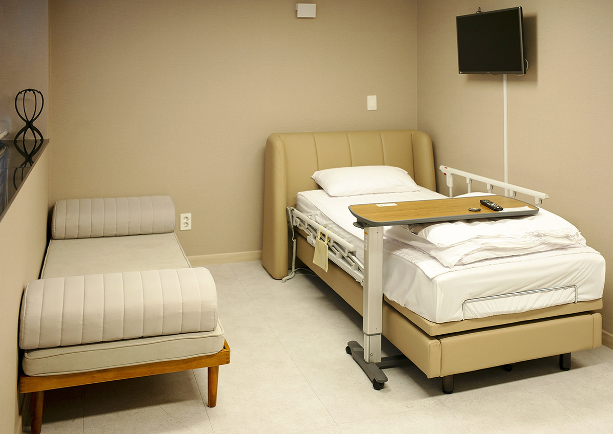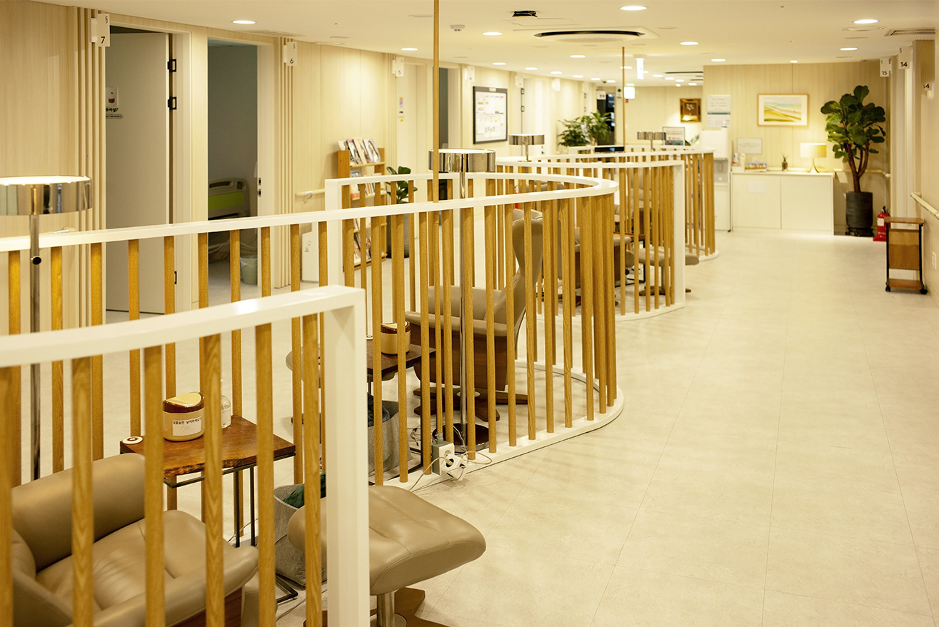 염창환병원에서 또 한 가지 눈에 띄는 점은 주사실을 전부 1인실로 바꾼 것이다. “우리병원의 가장 큰 장점은 주사실입니다. 2층 주사실이 다 1인실로 되어있습니다. 다른 병원들은 돈을 벌 수 있는 곳에 투자합니다. 중요한 것은 환자가 빠져있습니다. 우리 병원은 환자의 안정과 편의를 위해 주사실을 전부 1인실로 바꾸었습니다.”