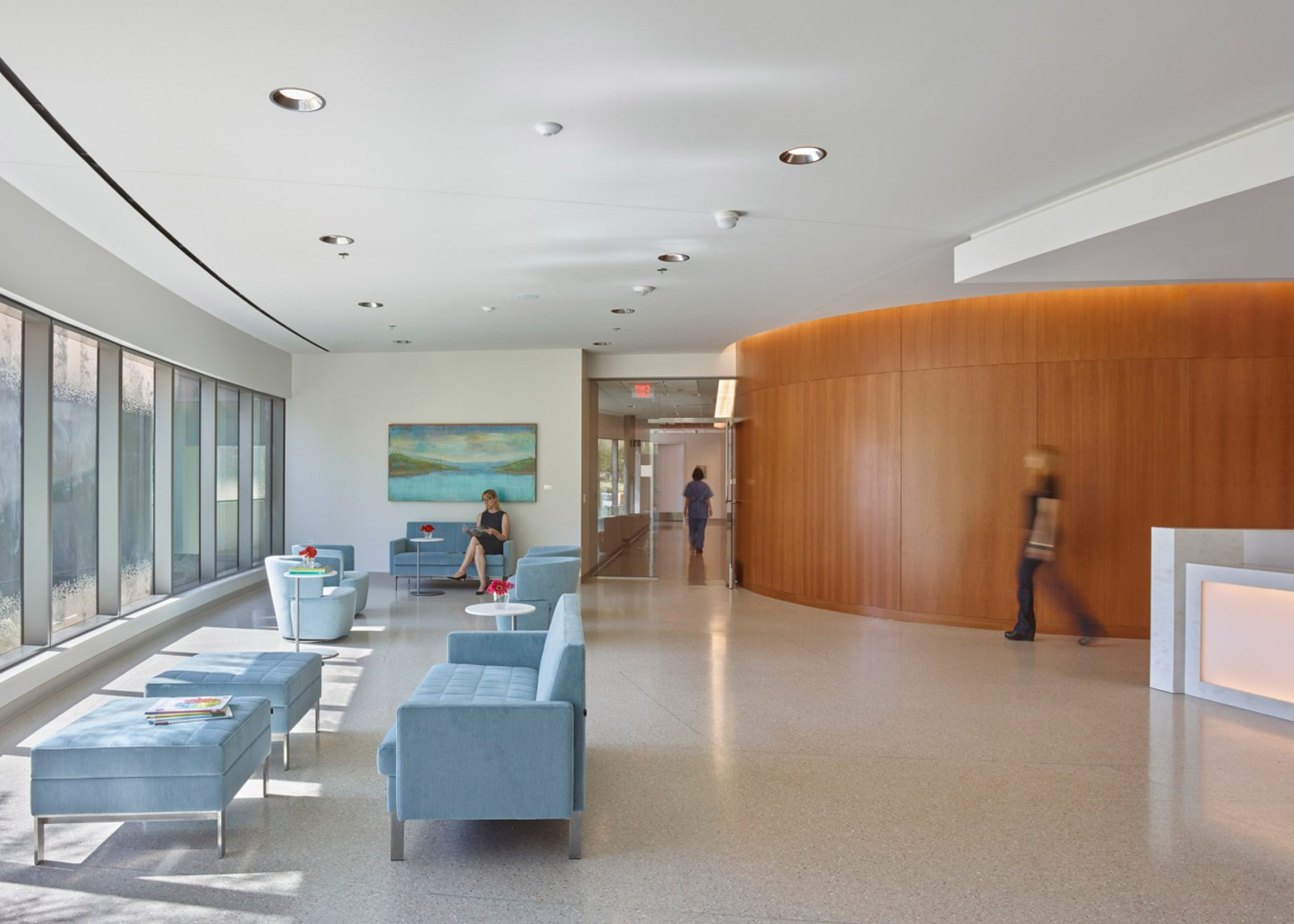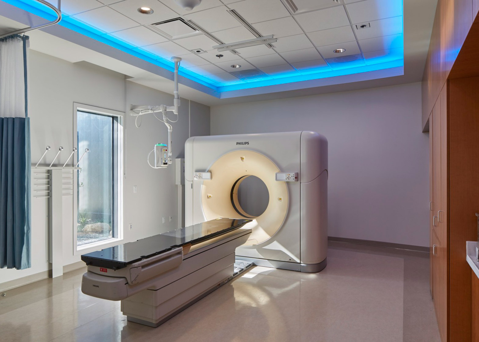 종양학 방사선 서비스를 지상과 빛으로 가져온 이 최첨단 의료 센터 암환자의 고유한 요구사항인 연속 5주에서 8주 도안 주 5일 발생하는 치료 빈도에 중점을 두고 디자인되었다. 치료에 따른 스트레스와 불안을 완화하기 위해 자연 채광, 자연 경관, 차분한 인테리어 색상을 활용하여 진단 및 치료 센터가 아닌 스파 같은 차분하고 자연 지향적인 경험을 만들었다. 또한 현대적인 장식과 예술작품을 설치하고 나무 벽 패널과 같은 흙 마감재를 추가, 복도와 기타 구역에는 코브 조명을 사용하여 부드러운 분위기를 조성했다.