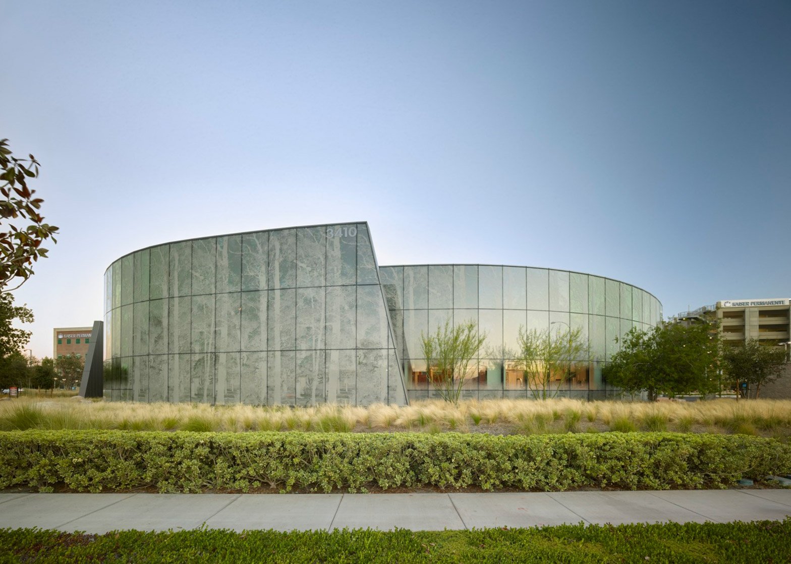 Kraemer 방사선 종양학 센터는 건물 자체가 새로운 Kaiser Permanente Anaheim 캠퍼스의 관문 역할을 한다. 외부 유리 입면은 건물의 조각적 형태를 향상하고 주변 풍경을 반영하는 맞춤형 글레이징 패턴으로 내외부를 연결하며, 유리 패턴 밀도는 원하는 곳에서는 투명도를 제공하고 필요한 곳에서는 투명도를 낮춰 프라이버시를 보호하는 등 공간에 맞춰 다양하게 제공한다. 무엇보다 밤이 되면 유리를 통해 따뜻한 빛을 발하는 건물은 암에 걸린 모든 사람들에게 희망의 등대가 된다.