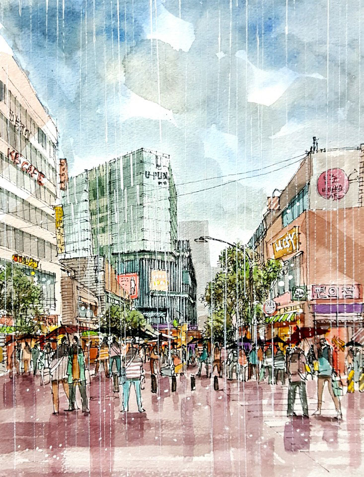 신촌은 한때 젊음의 상징공간이었다. 90년 대 말부터 홍대, 대학로, 강남 등으로 청년문화 중심지가 이동하고 소비상권만 남아 고유한 개성이 점점 실종되어왔다. 하지만 신촌 문화 플랫폼을 구축하고 신촌의 골목상권을 개선하여 새로운 활력을 불어넣고 있다. 젊은 신촌의 부활을 기대한다. 한 여름 소나기가 내리면 젊은 연인들은 우산 속에서 공간을 만들어 더욱 다정하다. 역동적인 신촌 거리를 활보하고 싶어진다.