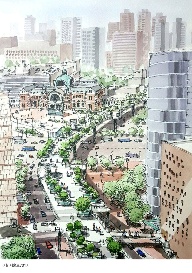 1970년 차량통행을 위해 만든 고가도로가 2017년 보행자의 공원길로 거듭나게 되면서 ‘7017’이라는 이름을 얻었다. 사람중심, 보행자 중심 도시재생의 시작을 알리는 서울시의 프로젝트로 국제현상공모를 거쳐 완성되었다. 고가도로라서 지면에 접하지 못한 이유로 대부분 키가 낮은 관목류로 구성되어 무더운 여름에는 대형 파라솔 그늘이 필요하지만 방문객들에게 사랑받는 명소로 자리 잡아가고 있다. 그 이후 옛 서울역사 옥상과 연결되는 공중 보행로가 개통되었고 향 후 남산자락과도 연결하여 확장된 생태네트워크가 기대된다.