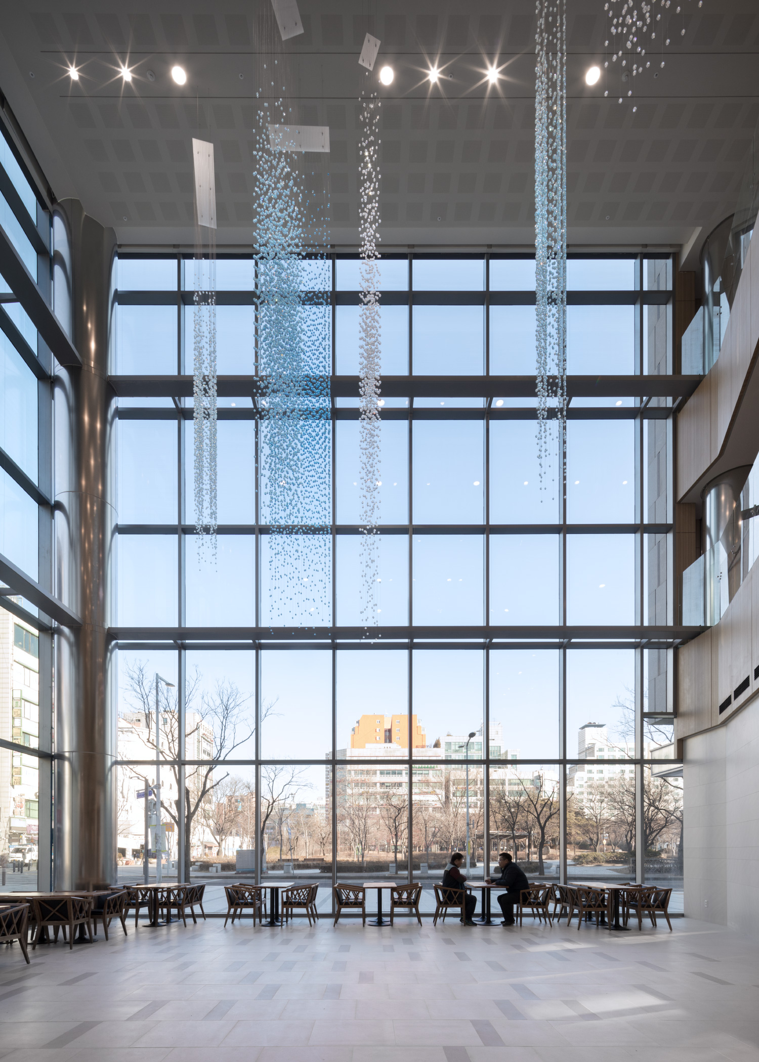 갤러리 건물의 속으로 들어가면, 주변의 외부환경을 내부에 적극적으로 끌어들이는 친환경적 공간들을 어렵지 않게 만날 수 있다. 3개 층으로 크게 열린 아트리움 로비, 병동환자를 위한 중정, 환자의 특성에 맞춰 층별로 계획된 다양한 옥상정원, 직원을 위한 별도의 휴게 공간들은 밝고 쾌적한 내부환경을 제공함으로써 의료진의 의료서비스 질을 향상하고 환자에게는 더욱 향상된 치유환경을 조성하였다.
