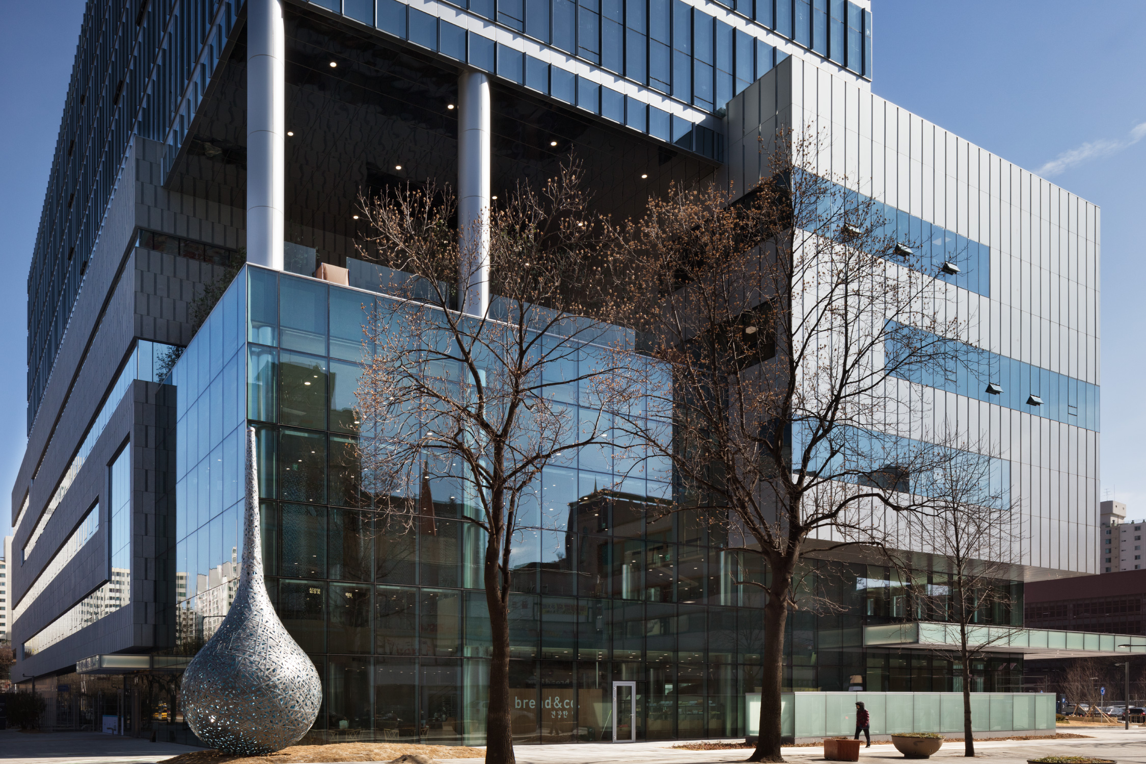저층부는 복합의료시설의 다양하고 복잡한 프로그램들과 행위가 혼재하는 곳으로써 그 변화가 공용공간에서부터 점차 퍼져나간다는 점을 추상화하여 입면에 점진적으로 변화하는 패턴으로 표현하였고, 병동부는 가장 반복적인 행위가 일어나는 곳으로 반복이 강조된 단순한 디테일로 정형화된 입면을 구성하였다.