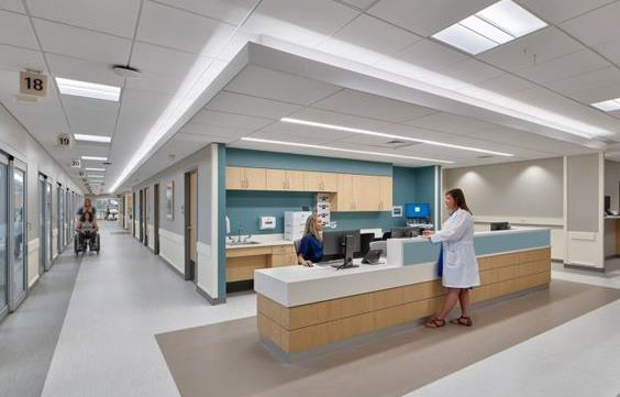 직원 스테이션은 직원의 직업 효율을 방해하지 않는 밝고 쾌적한 조명 환경이 요구된다. 컴퓨터 모니터에 눈부심과 반사가 없어야 하며, 약품이나 의료용구에 대한 정보를 더 잘 읽고 빨리 정보를 제공할 수 있어야한다.