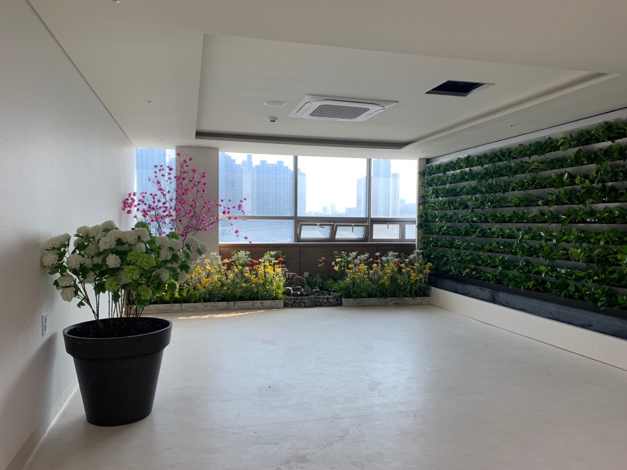 환자들이 주로 생활하는 병동은 햇살을 선물 받는 따스한 느낌을 주고자 그린과 옐로우 색상을 메인 컬러로 사용했다. 이를 통해 만들어진 평온하고 안정된 최상의 힐링 스페이스는 환자들의 남은 인생을 보내기에 안락하고 쾌적한 공간으로 거듭났다. 로비 한쪽 벽면에는 조화가 아닌 살아 숨 쉬는 식물로 한쪽 벽을 구성하여 공간에 생기를 더했다. 벽을 가득 채운 식물의 초록빛이 주는 안정감을 통해 호스피스 병동 내에서 가장 힐링할 수 있는 공간으로 변화했다.