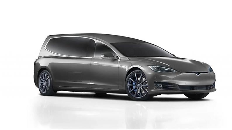 테슬라의 S 모델을 개조한 장의차를 통한 친환경 장례식