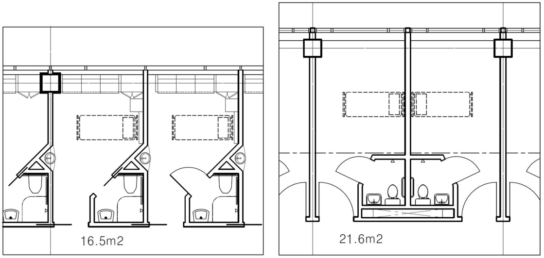 물론 정책적인 검토와 결정이 선행되어야 하겠지만, 물리적인 조건과 비용만 따져본다면, 그 시점은 아마도 점차 커지고 있는 4인실 하나와 타이트하게 계획된 1인실 4개 사이의 면적이 그리 차이가 나지 않는 시점, 그래서 초기투자비나 유지관리비 면에서 그리 큰 차이가 나지 않는다고 판단하는 시점이 되지 않을까요? ■