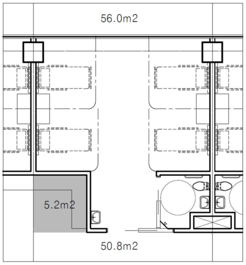 이러한 사례들과 우리나라 문화나 정서를 고려해 볼 때, 1인실의 최소 면적은 18㎡ 정도는 되어야 할 것 같습니다. 당장은 불가능하겠지만 언젠가는 우리나라 병원들도 전 병상 1인실제로 가는 날이 올 것입니다. 이를 위해 더 많은 유닛 평면 스터디도 필요하겠지요.