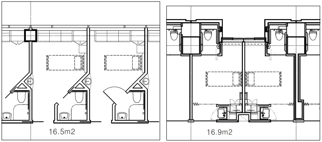 물론 정책적인 검토와 결정이 선행되어야 하겠지만, 물리적인 조건과 비용만 따져본다면, 그 시점은 아마도 점차 커지고 있는 4인실 하나와 타이트하게 계획된 1인실 4개 사이의 면적이 그리 차이가 나지 않는 시점, 그래서 초기투자비나 유지관리비 면에서 그리 큰 차이가 나지 않는다고 판단하는 시점이 되지 않을까요? ■