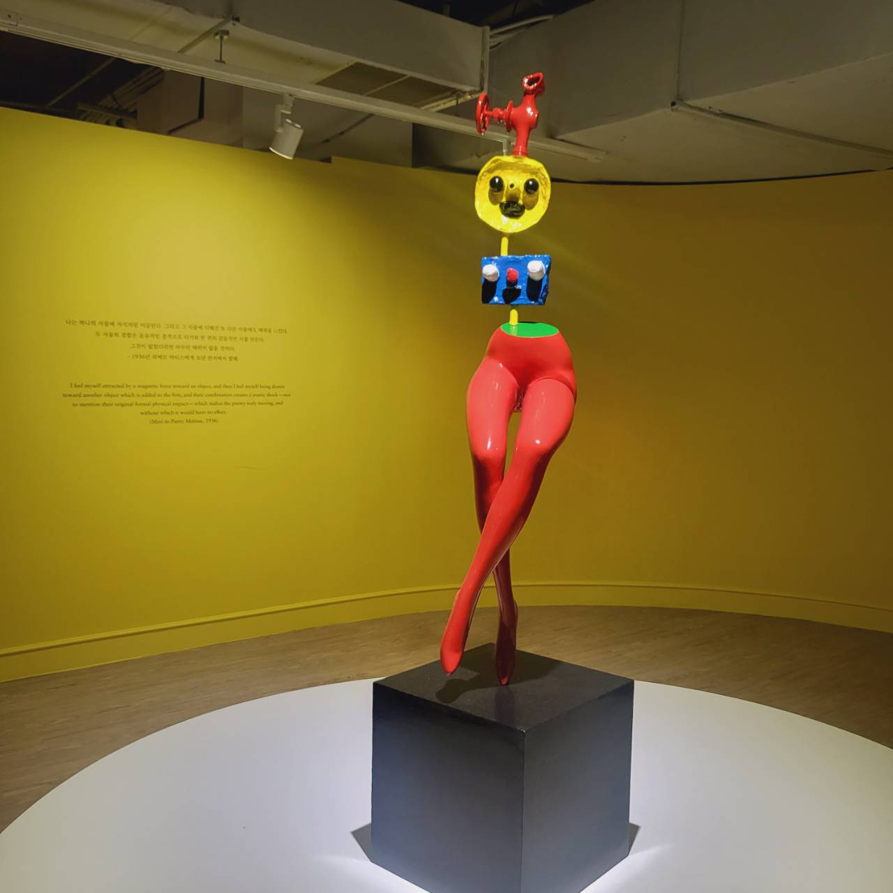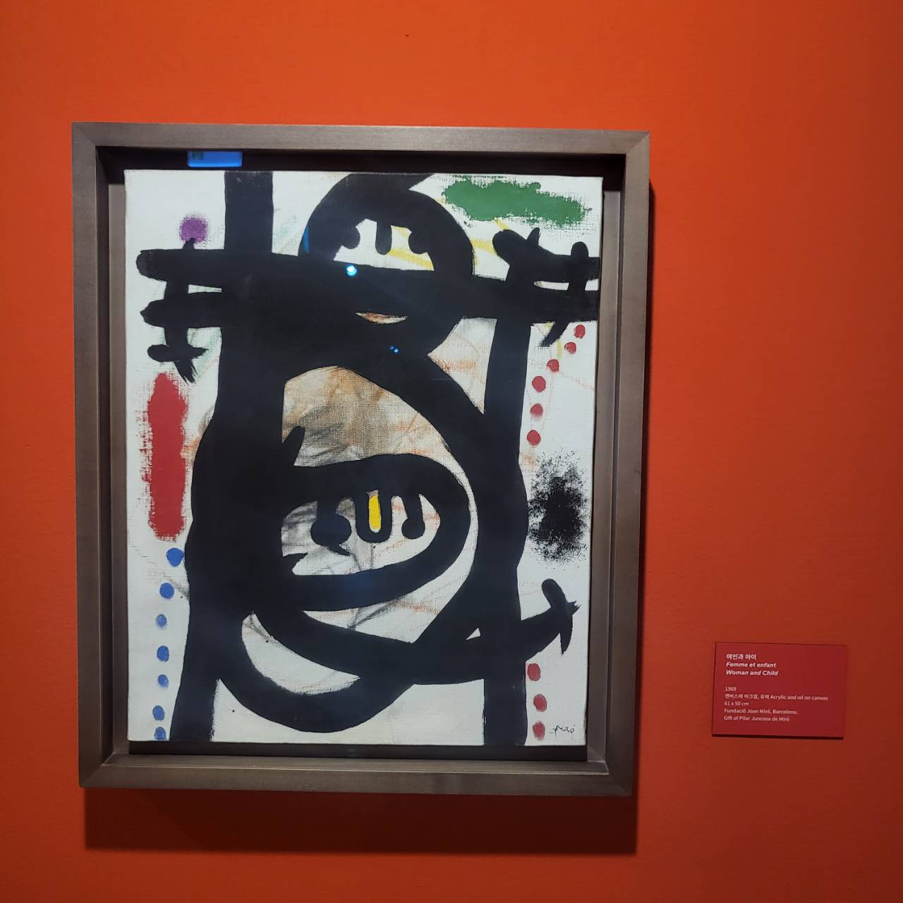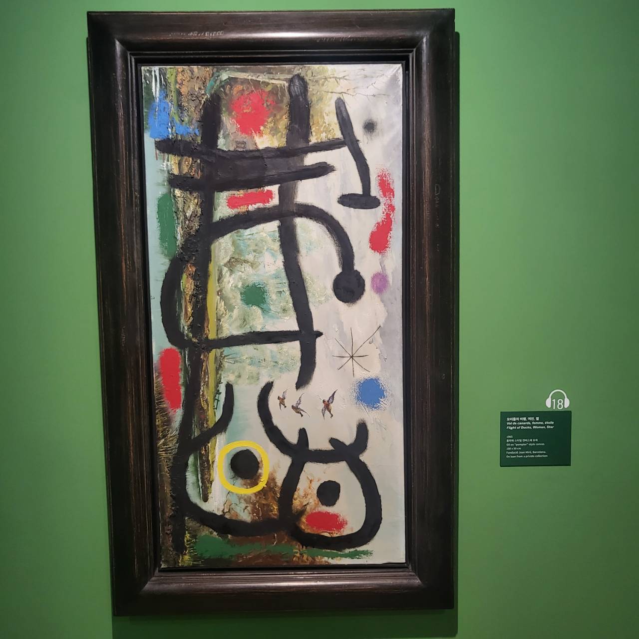 <호안 미로 : 여인, 새, 별> 전 <사람>  <몬로이츠> 시리즈  <여인과 아이> 이 작품 뭐지? 즉흥적으로 그려 나간 듯한 이 작품이 몇 년에 걸쳐 그려진 작품이라고? 호안 미로 작품의 첫 느낌은 쉬운듯하면서 낯설다. 강렬한 색감과 화면을 가득 채운 그만의 추상적인 기호들은 작품 속에서 날아다니고 있다. 그런데 이 작품들이 정밀하고 치밀한 계획으로 구성되어서 오랜 시간 동안 고민해서 완벽한 배치로 이뤄낸 즉흥적인 작품이라니. 어울리지 않는 계획적이면서 즉흥적이라는 표현이 호안 미로 작품 속에서는 말이 된다. 스페인의 고전 화가 하면 벨라스케스가 먼저 떠오른다. 그리고 대표적인 화가로 피카소와 달리까지는 그려지는데 호안 미로는 떠오르지 않았다. 사실 잘 몰랐기에 떠올리지 못한 것이다. 그래서 스페인에 가면 한 번씩 들린다는 호안 미로 미술관 작품들을 국내에서 전시한다고 하니 궁금할 수밖에. 그렇게 찾게 된 전시회에서 만난 호안 미로의 작품은 무의식, 욕망의 경계를 넘나들면서 꿈꾸고 있는 듯한 느낌이 든다. 그가 처음 파리로 이주했을 때 어울렸던 이들 중 시인과 작가들이 많았다고 하는데 그는 시를 정말 사랑했다고 한다. 그의 작품 속에 담겨있는 시들은 회화적 기호가 되어 위치의 구분 없이 나열되어 창조적인 시각언어로 변모되어 있었다.    좌 <여인, 새, 별> / 우 <여인, 새> 전시 작품들은 그가 시적 기호를 그림 속에 어떻게 녹아내었는지 보여주고 있었다. 여인과 새, 별, 사다리 등은 시적 기호와 엮어져 그만의 새로운 세계가 만들어졌는데, 어떻게 보면 아이의 시각에서 봐도 낯설지 않을 정도로 단순화시켜서 표출했다고 하겠다. 해방된 기호에서는 추상적이고 암시적인 기호들이 더욱 혼합되고 재창조되어 변화하고 있었다. 태양, 달, 별자리, 사다리 등은 현실과 이상을 넘나들고 있었고, 또 다른 작품 속에서는 빨간색과 노란 원색의 대비가 강렬하고 굵게 그린 검은 선들에는 에너지가 넘쳐났다.    좌측부터 차례로 <풍경속 여인과 새들> / <새들> / <오리들의 비행, 여인, 별> 미로의 작품 속 여인은 실제 여자를 표현했다기보다 우주로 묘사되었다. 또한 새는 지상과 천계를 오가는 초월적 수단의 기호로 자주 표현되었다. 너무 쉽게 그린 거 같은 데라고 생각하다가도 찬찬히 들여다보면 그 유연함과 역동성에 매료될 수밖에 없다. 또한 그가 얼마나 다양한 기법과 재료를 이용해 일상 사물 속에서 새로운 이미지를 만들어 냈는지도 볼 수 있다. 노끈과 마네킹, 수도 펌프 등이 새롭게 재창조된 오브제 작품이 전시되어 있다. 특히 그를 제대로 보여 준 게 벼룩시장에서 구입한 작자 미상의 풍경화에 다시 그가 덧칠해서 기존 회화작품의 존재감을 없애버린 <오리들의 비행, 여인, 별>이란 작품이 아닐까 싶다. 전통회화 기법을 인정하지 않고, 완전히 재해석해서 그냥 배경으로만 만들어버리다니. 이게 바로 호안 미로가 추구한 미술의 세계가 아닐까. 그의 작품 속 탈출을 상징하는 사다리를 이 작품에서도 볼 수 있다. 그가 겪은 2차대전과 스페인 내전은 그가 이러한 작품 활동을 통해서 현실을 벗어나 오롯이 자신에게 집중하면서 내면 속 자유를 갈망하고 표현하도록 한 배경이 되었을 것 같다.  <탈출하는 소녀>  좌 <아름다운 모자를 쓴 여인>  /  우 <여인, 새, 별>  석판화  <달빛 아래의 카탈루냐 농부> 주절주절 이렇게 작품에 대해 평을 써 내려가면서도 아마 호안 미로가 원한 건 이게 아니었을 것 같다는 생각이 든다. 극도로 단순화된 형상을 보면서 상상의 즐거움과 그가 그려낸 세계를 느낄 수 있기를 바랐을 것이다. 나이가 들어갈수록 미술 작품을 좋아하는 이유가 답이 없어서 그런듯하다. 강렬한 색과 검은색의 라인이 만든 실루엣을 한참 바라보고 있다 보면 어느새 상상의 나래를 펼치고 있는 자신을 발견할 수 있는 것처럼 말이다. 이렇게 작품 앞에서 한참을 서 있게 만든 힘이 있는 화가가 바로 호안 미로인 듯하다. 회화부터 드로잉, 판화, 조각 등 다양한 작품을 끊임없이 만들면서 자신만의 세계를 확장해 나간 호안 미로. 다음에 스페인을 방문하게 되면 현지에서 호안 미로 전시회를 꼭 다시 찾아가서 작품 앞에 서 있지 않을까 싶다. ■ 글/사진. 이현주 병원 마케터