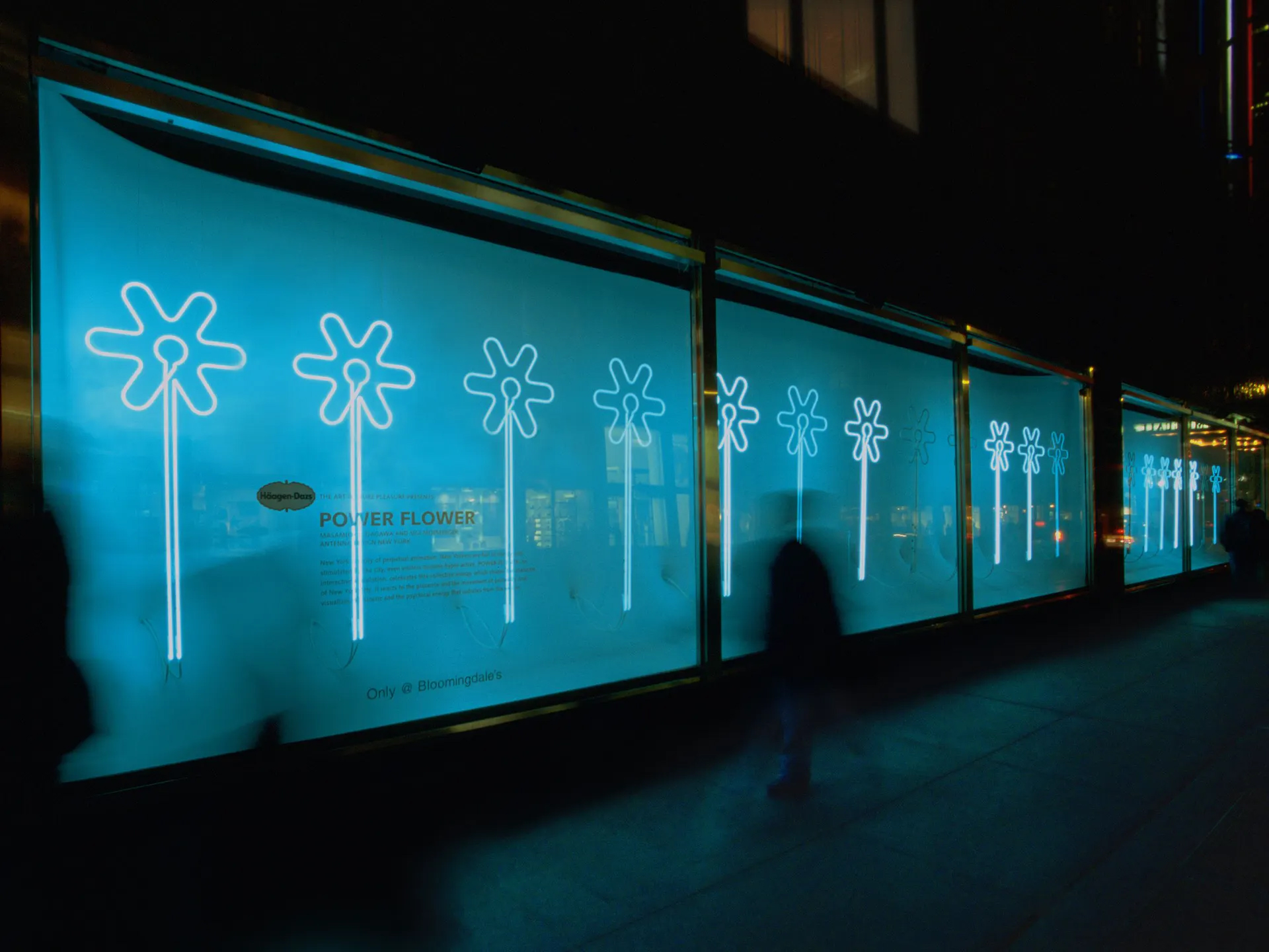 먼저 하겐다즈사에서 브루밍데일 백화점 1층 쇼 윈도우에 제공한 ‘파워 플라워(Power flower, 2002)’는 침체된 뉴욕시민들에게 긍정적인 메시지를 전달하고자 계획된 미디어 설치공간으로, 생명과 아름다움을 상징하는 꽃을 테마로 안테나(Antenna) 그룹에서 디자인하였다. 쇼 윈도우 안에 만들어진 32개의 네온 꽃들의 모션센서는 지나는 뉴욕 시민들의 움직임에 반응해 빛과 소리를 내며, 일상 속 즐거운 공간 이벤트를 만들어냈다.