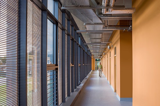 아마도 많은 사람들이 끝없이 이어진 어두컴컴한 복도를 연상할 것입니다. 건물의 창가 쪽에는 실들 위주로 배치되어야 하니까 병원의 복도가 암실이 되는 것은 어쩌면 당연한 것일지도 모릅니다.그런데 병원들에 있어서도 아트리움이라든가 중정들이 내부에 설치되기 시작하면서, 외래환자나 내원객들이 다니는 공용복도들은 그나마 햇볕의 혜택을 누리기 시작했습니다. 하지만 의료진, 직원, 물류들이 다니는 직원 복도는 여전히 암실 조건에 놓여있을 수밖에 없었지요.