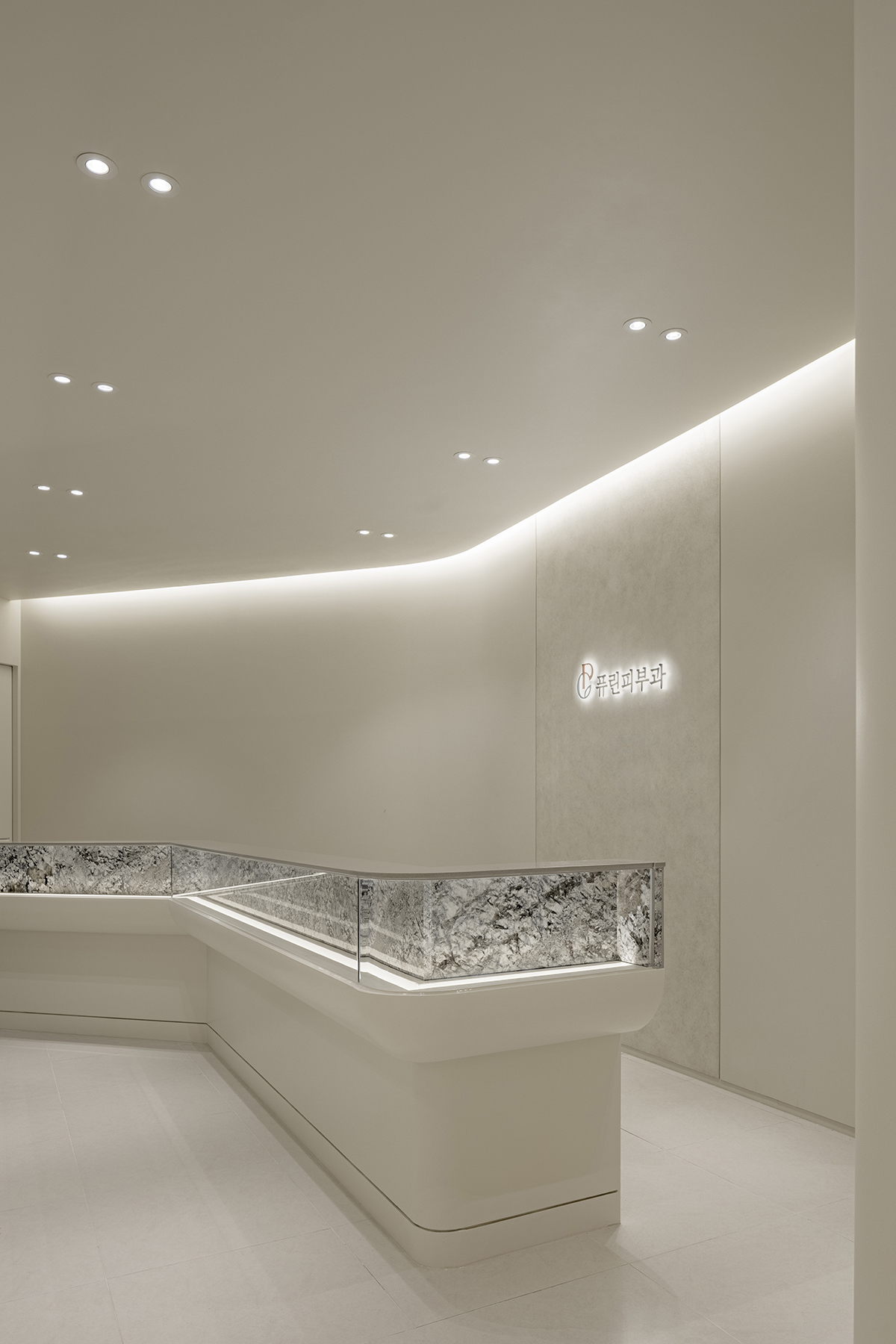 개원 20주년을 맞아 새롭게 리모델링한 퓨린피부과의원. 갤러리와 같은 공간을 원했던 클라이언트의 요구사항에 맞춰 아이보리 톤의 깨끗한 공간을 만들고 이와 대비되는 화려한 대리석으로 마감하여 공간의 우아한 무드를 담았다. 한정된 예산과 공간 내에서 기존의 불편함을 개선하고 새롭게 시작하는 의지를 담고자 리모델링한 프로젝트이다.