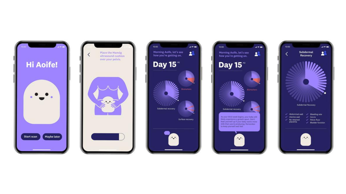 사진 출처 : https://eadaoinhennessy.myportfolio.com/mamog Mamog은 산모에게 배포하는 디지털 산후 관리 패키지다. 산모는 갓 아이를 낳은 여성을 지칭하는 단어로 그들은 추가적인 모니터링과 사후관리가 필요하다. 산모들의 사후관리를 편하게 돕고 정서적 지원까지 지원하는 Mamog는 신체 회복 지원은 초음파 쿠션과 AI를 기반으로 하는 앱을 통해 이루어지며 이 앱은 출산 후 6주 검진까지 산모의 회복을 모니터링하고 촉진시킨다. 정서적 지원은 앱에서 접근할 수 있는 자원봉사 또는 Mamog의 멘토들의 네트워크를 통해 이루어진다. Mamog의 초음파 쿠션은 사용자의 표면 상처, 골반, 바이오마커를 스캔하여 회복이 원활하게 진행되도록 한다. 이 정보는 주치의와 Mamog 앱에 전달되어 사용자가 쉽게 보고 궁금한 점을 물어볼 수 있다. 이 앱은 이상하거나 잘못된 것이 있으면 알려주고, 필요하다면 의사에게 연락하라고 조언한다. Mamog는 신뢰할 수 있는 산모 네트워크를 통해 산모에게 정보를 제공하고 산후 회복 과정을 지원한다.
