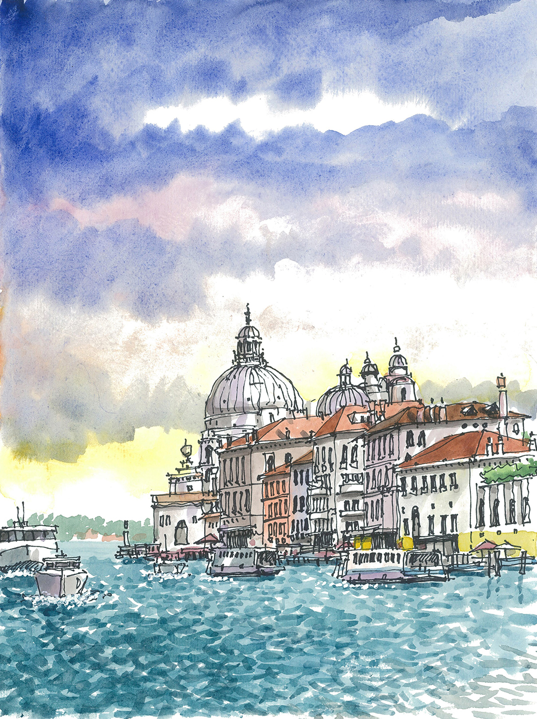 베니스 곤돌라 특히 클로드 모네의 ‘대운하’라는 작품들에서는 산타마리아델라 살루테 대성당이 배경으로 등장하며 낭만적인 물의 도시를 표현하고 있다.