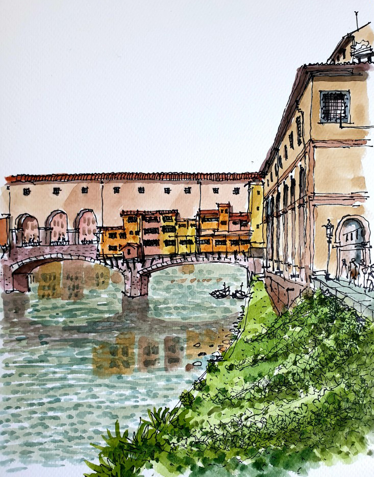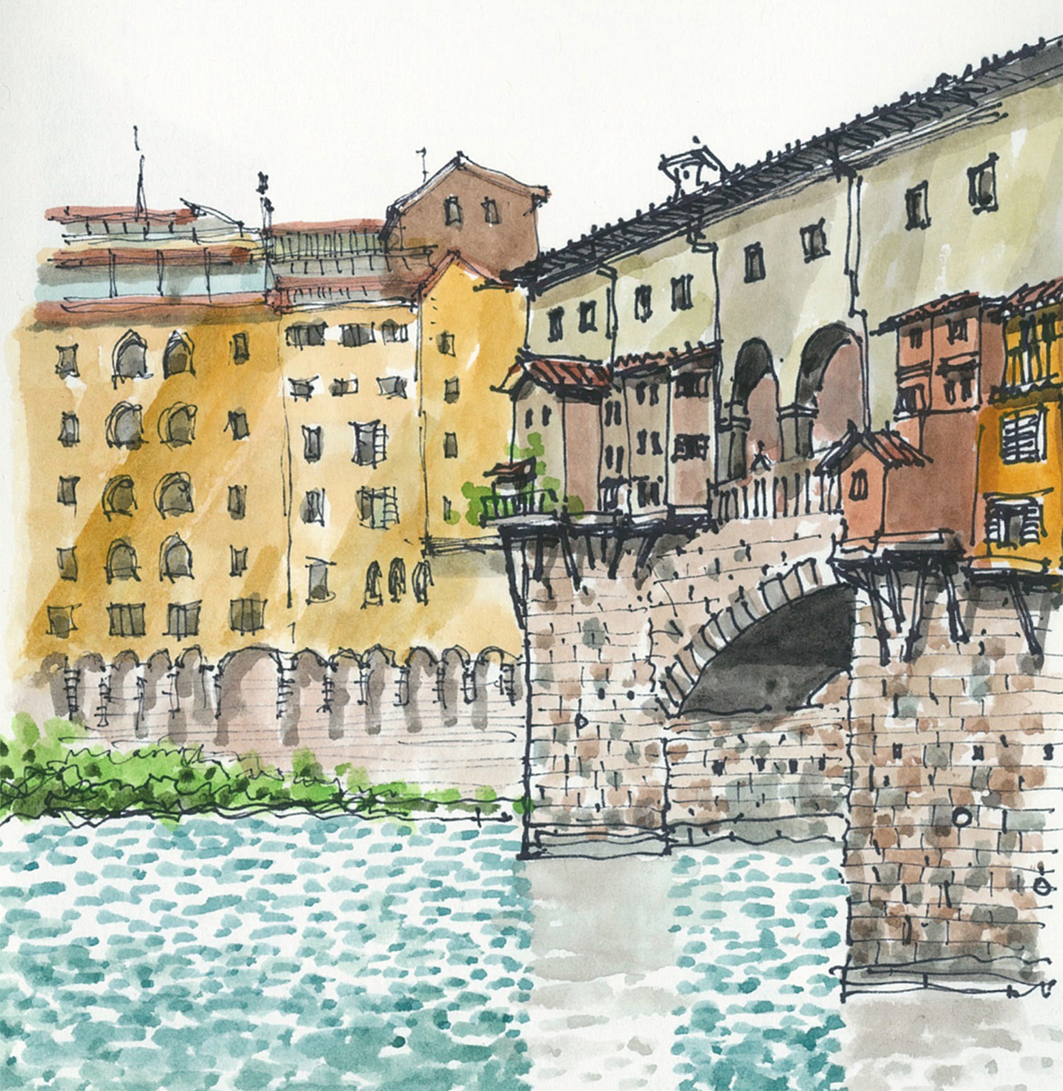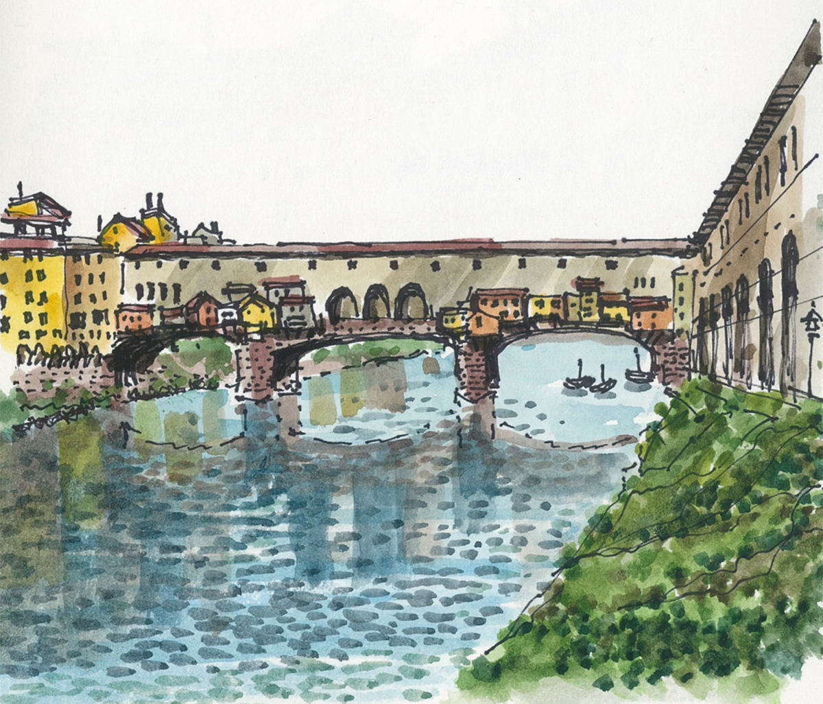 "피렌체의 두오모는 연인들의 위한 성지야. 영원한 사랑을 약속하는 장소지."이렇게 시작되는 영화로도 소개된 소설, '냉정과 열정 사이'의 배경이 되었던 로맨틱한 도시다. 주인공 준세이가 자전거로 건너는 아르노 강의 풍경 너머 베키오 다리는 원색의 건축물들이 덧대어 구성된 특이한 구조를 가지고 있다. 다리 위에 지어진 옛 건축물은 지금도 활력 있는 귀금속 상업공간으로 활용되며 피렌체의 방문 명소로도 인기가 좋다.