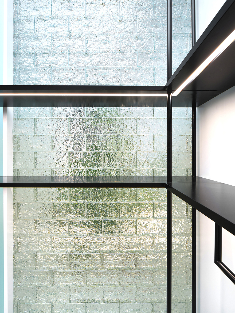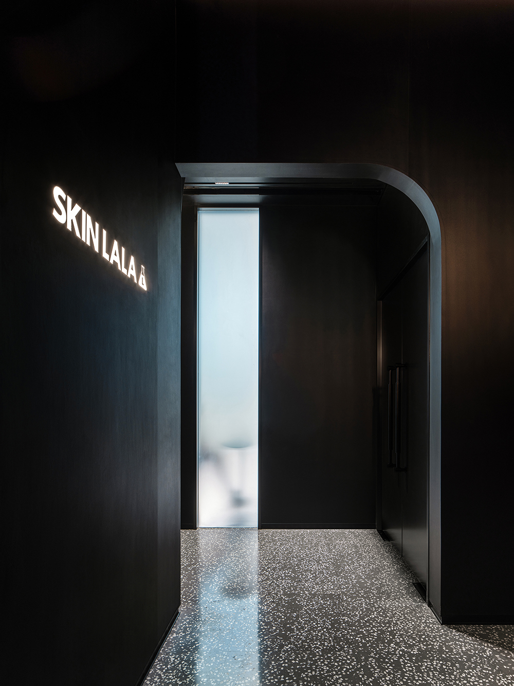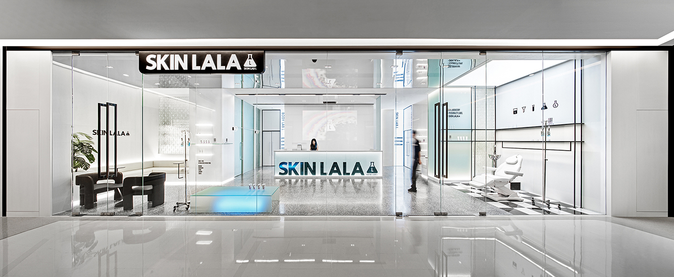 유리 소재는 좁은 공간이 비좁지 않도록 빛을 도입하면서 기능 면적 분할과 합리적인 순환을 실현하고, 내외부가 보다 상호작용 할 수 있도록 한다. 이와 함께 제품 디스플레이에는 브랜드 심층연구의 기술적 결정체도 고스란히 전시돼 수액 봉투, 주사 등 과학적 의료 형태를 통한 브랜드 차별화가 부각되고 있다. 이는 개인 맞춤형으로 현장에서 가장 타깃이 많은 피부 각성 프로그램을 분사하는 SKINLALA의 가장 큰 특징 중 하나이기도 하다.