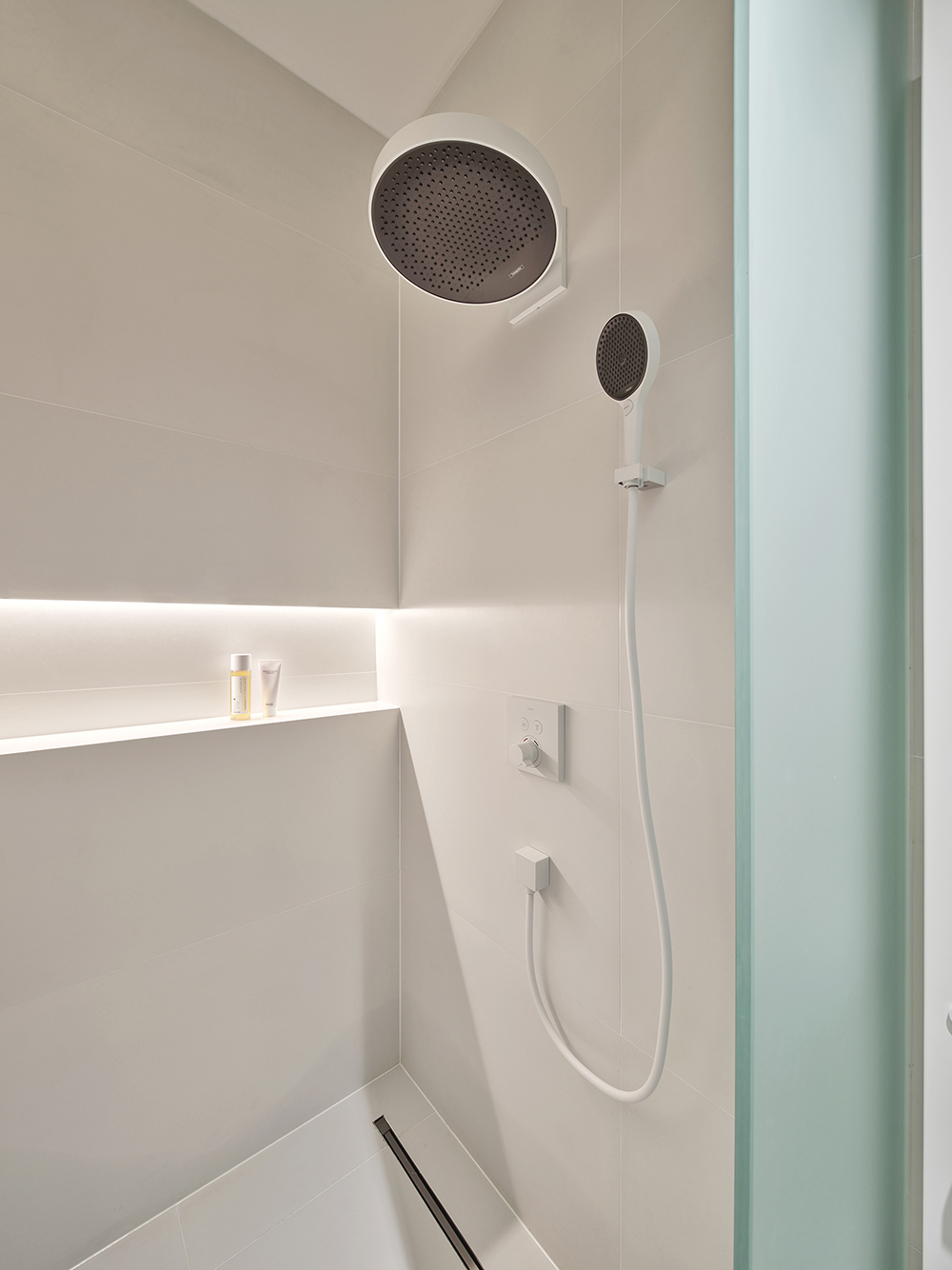 손님 구역 왼쪽에 있는 파우더룸은 다른 모든 공간과 마찬가지로 모든 세부 사항에 주의를 기울이고, 불필요한 장비와 환기구를 보이지 않는 곳에 숨겨 작고 순수한 공간을 구현하였다. 특히 아치형 디자인 요소가 이 공간에 확장돼 부드러운 빛 환경이 사진 촬영을 위한 인물 보정 효과를 내는 흥미로운 파우더룸을 만들었다.