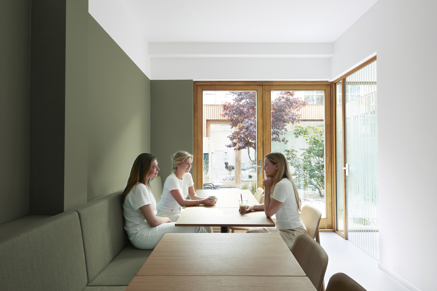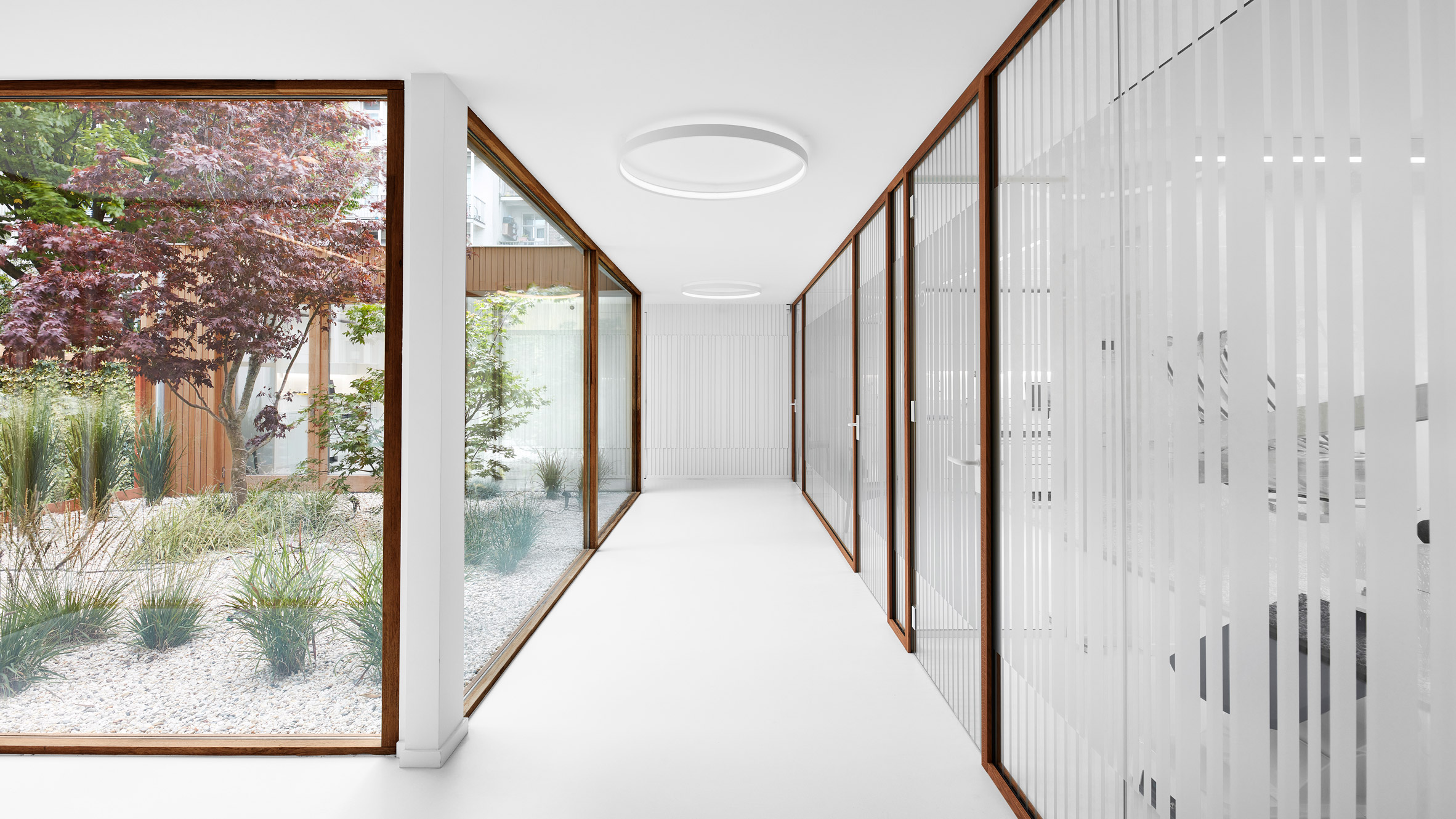 치료 구역의 중심부에 있는 야외 안뜰은 주변을 에워싼 8개의 치료실에 자연과 채광을 제공한다. 또한 녹색으로 칠한 간이 주방과 벤치가 있는 직원 휴식 공간에도 자연과 채광을 제공하며, 깨끗하고 신선한 의료 환경과 건강을 유도하는 웰빙 경험을 결합해 환자와 직원이 편안하게 느낄 수 있도록 하였다.
